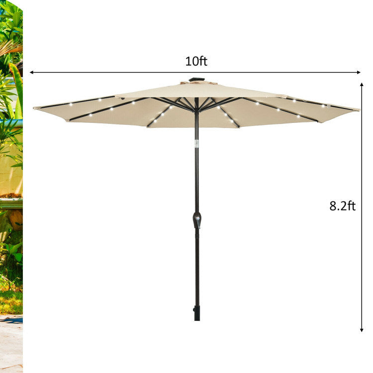 10 Feet Outdoor Patio Umbrella with Bright Solar LED Lights