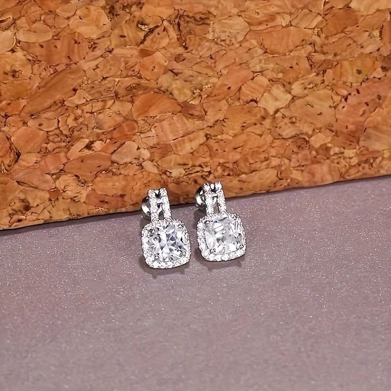 Product Details Material: Pure Copper Metal Type: Pure Copper Push-Back Style Earring Design Dangle Gemstone Type Moissanite Item Type Name Earrings About This Item Square Halo Cushion Earrings: Square Moissanite Stud Earrings are made of Square 2pcs/7x7mm + Round 1mm x 68pcs Moissanite Diamonds, Each pair of Moissanite Earrings weighs 4.34 carats. Earrings weigh approximately 2.5 grams. All metals are lead, nickel free and hypoallergenic. Real Sterling Silver: Our Square Halo Sterling Silver Stud Earrings are made of S925 sterling silver with 925 metal stamp and have passed strict quality inspection. The high polished sterling silver is plated with a layer of rhodium to prevent tarnishing and extend the life of the earrings, making it a practical and memorable pair of earrings for you. Moissanite Diamond: Moissanite is a lab-created diamond used in fine jewelry. Moissanite is brighter than diamond and will never lose its brilliance or fire. PERFECT GIFT: Brighter than diamonds and affordable, it's an ideal gift for Valentine's Day, Mother's Day, Thanksgiving, Christmas, Anniversaries and Birthdays.