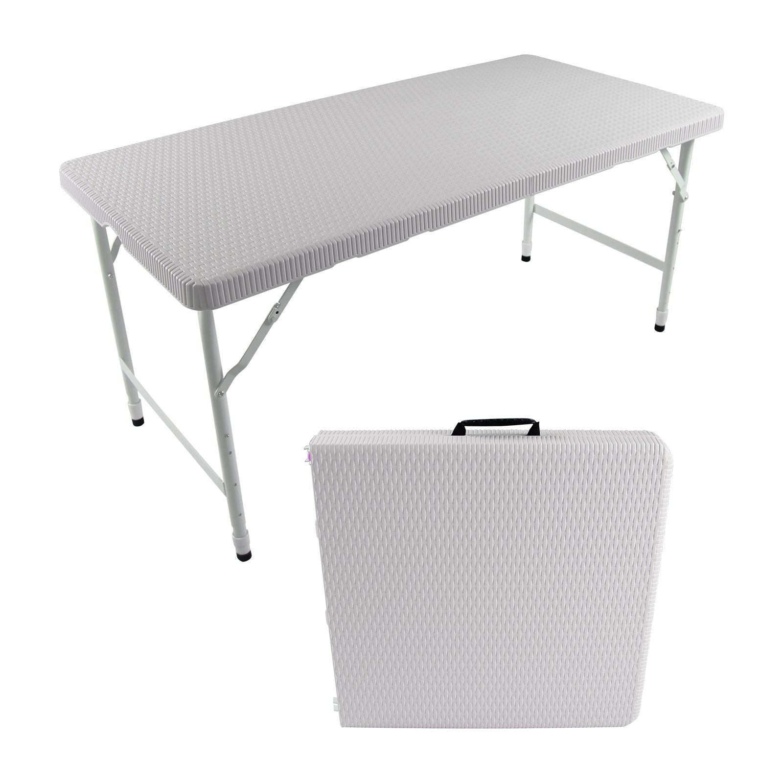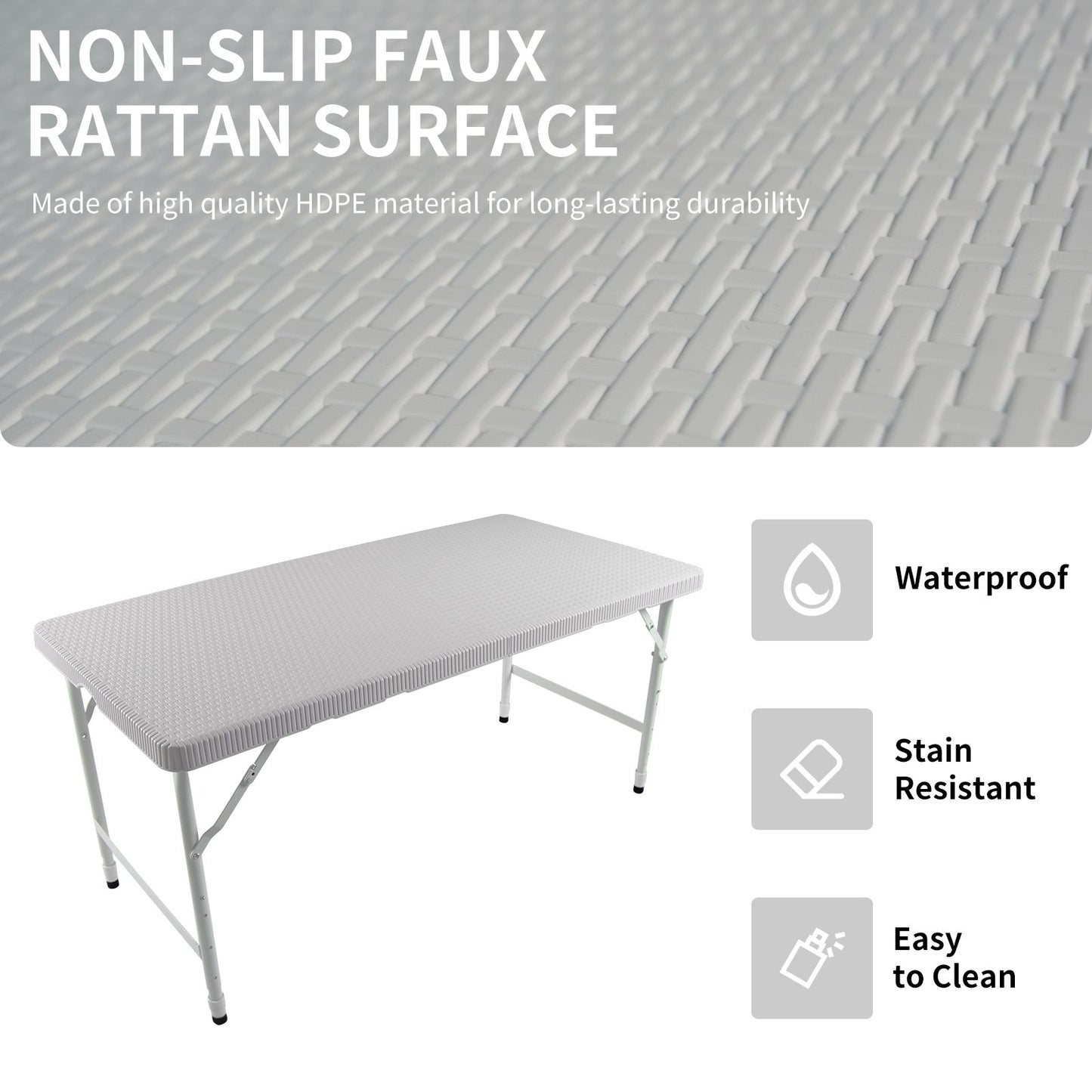 4ft Rattan Folding Table for Indoor&Outdoor, Portable Foldable Table Rattan Plaited White