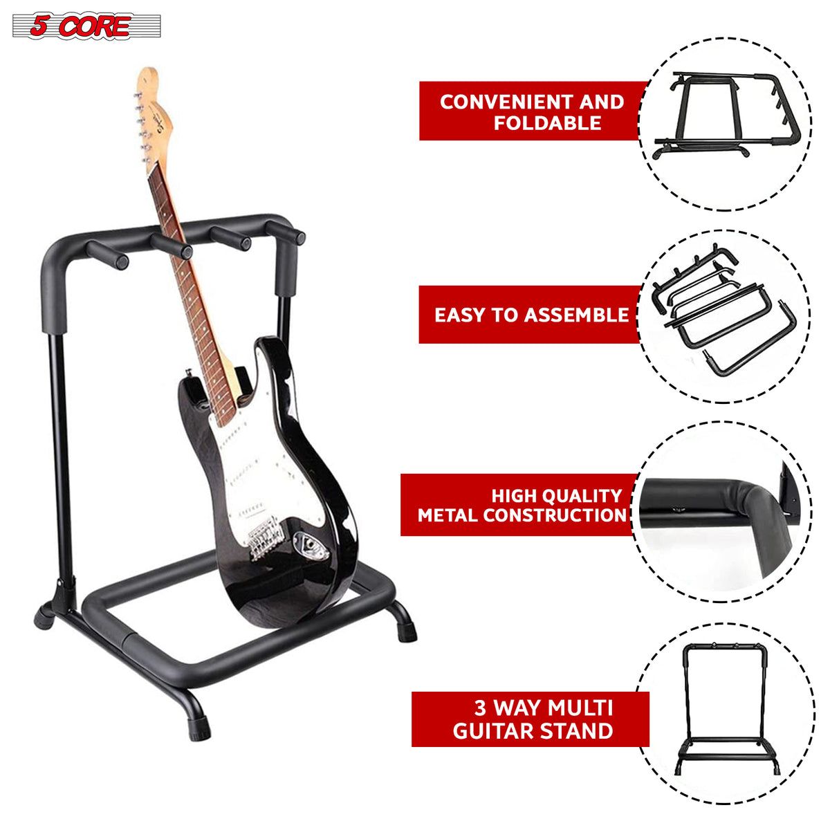 5 Core Guitar Rack 3 Slot Multi Guitar Stand Triple Display Floor Stand Safe Storage Foldable Portable for Electric Acoustic Flying V Guitars - GRack 3N1