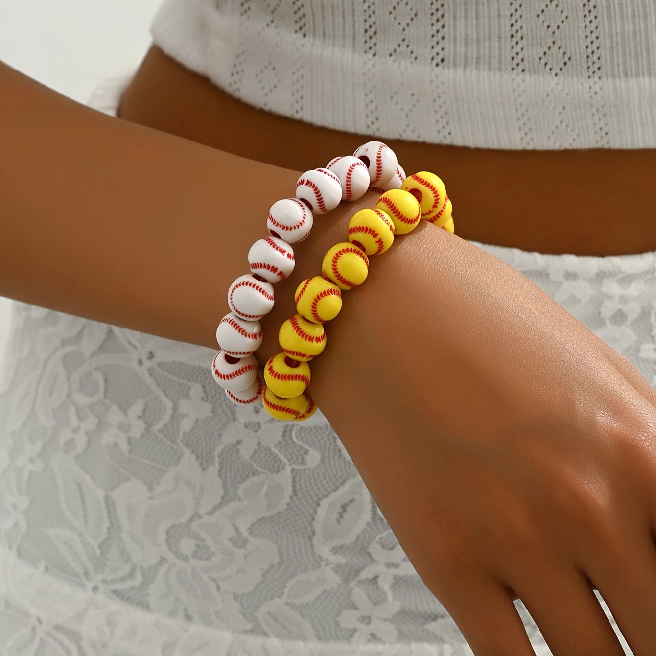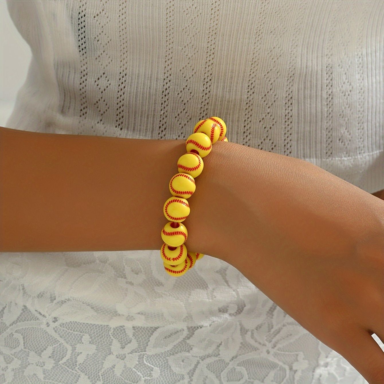 "Baseball Charm Bracelets Softball Bracelet Baseball Beaded Bracelets Adjustable Sports Theme Bracelets Gifts for Boys Teen"