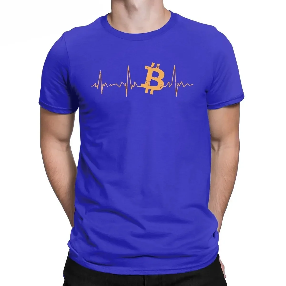 Bitcoin Heartbeat Graphic Rock Tshirt Men Cotton Crewneck Crypto Streetwear