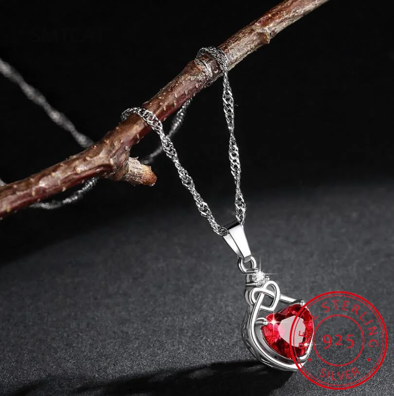 Blood Oath Ruby Pendant – 925 Silver Heart-Knot Choker with Firestone Zircon Spark