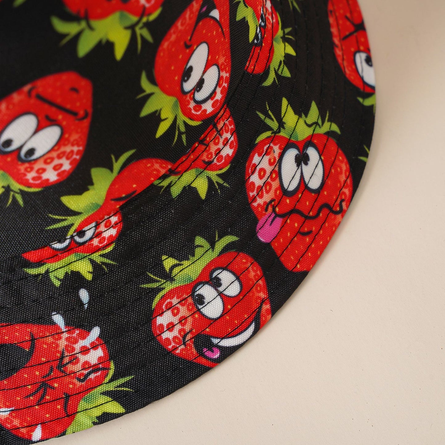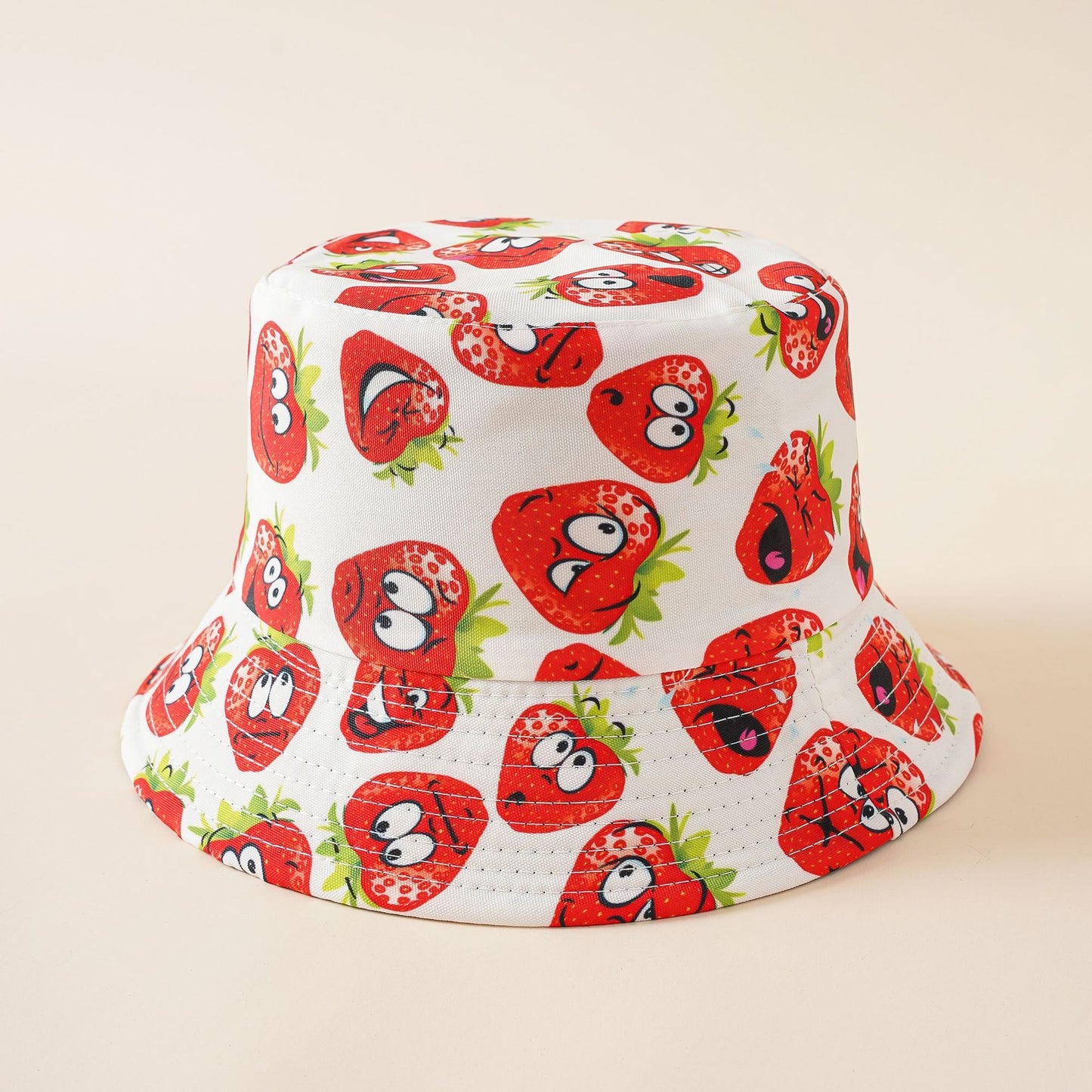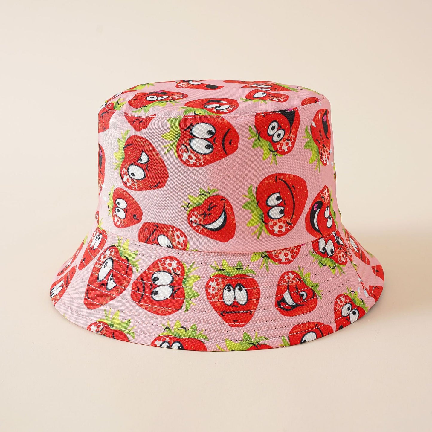 Cartoon strawberry pattern fisherman hat trendy double-sided wear creative basin hat cover face breathable cap sunscreen sunshade hat