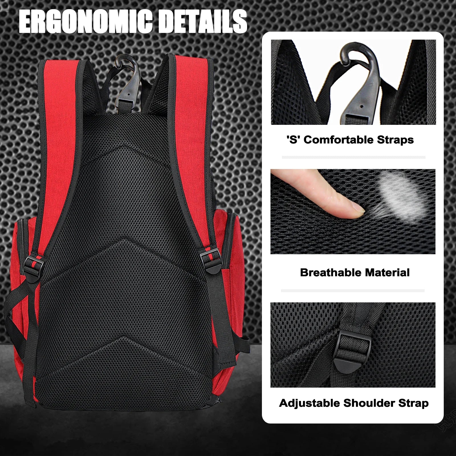 The basketball backpack is designed of water-resistant wear-resistant fabric.