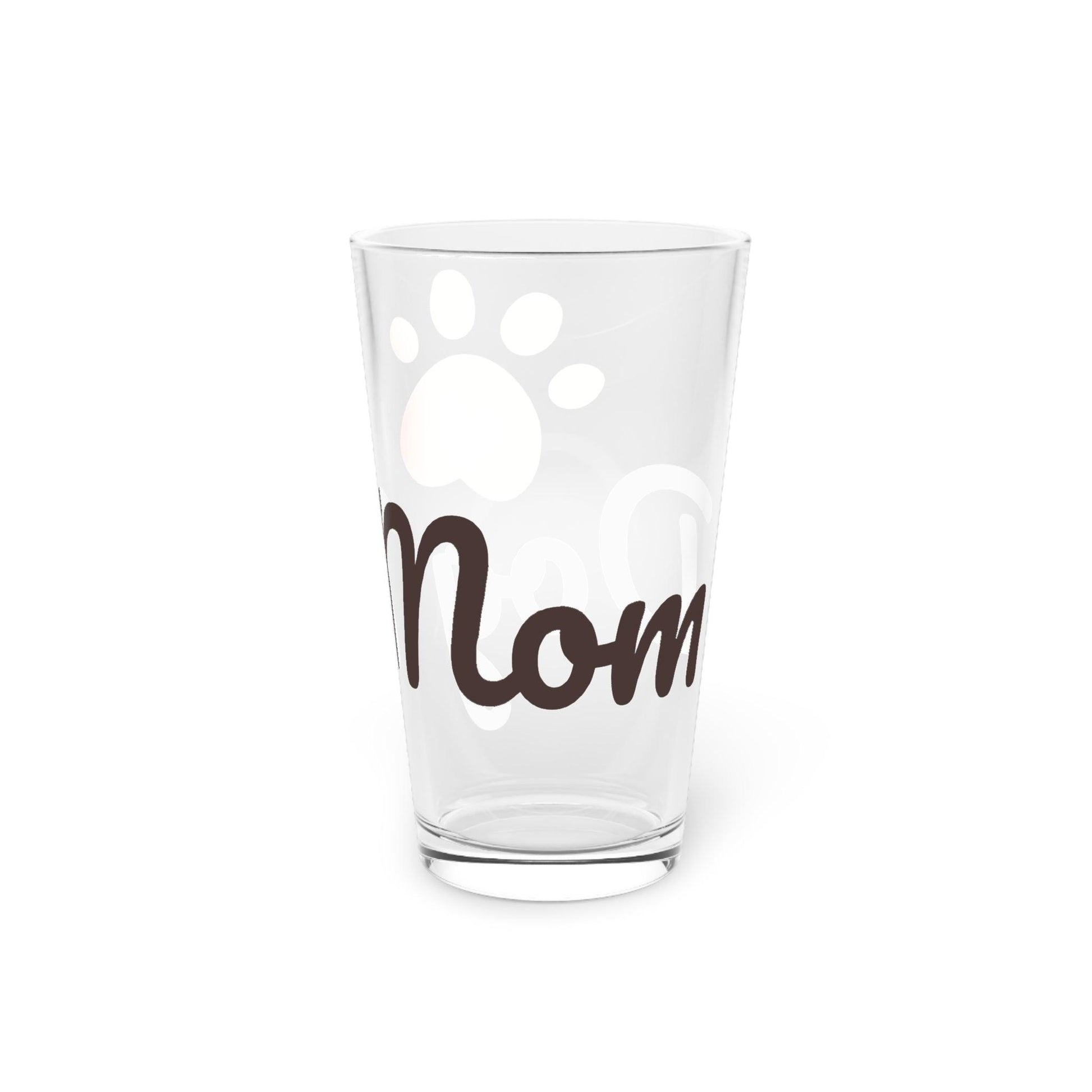 Dog Mom with Puppy Paw Heart Pint Glass, 16oz