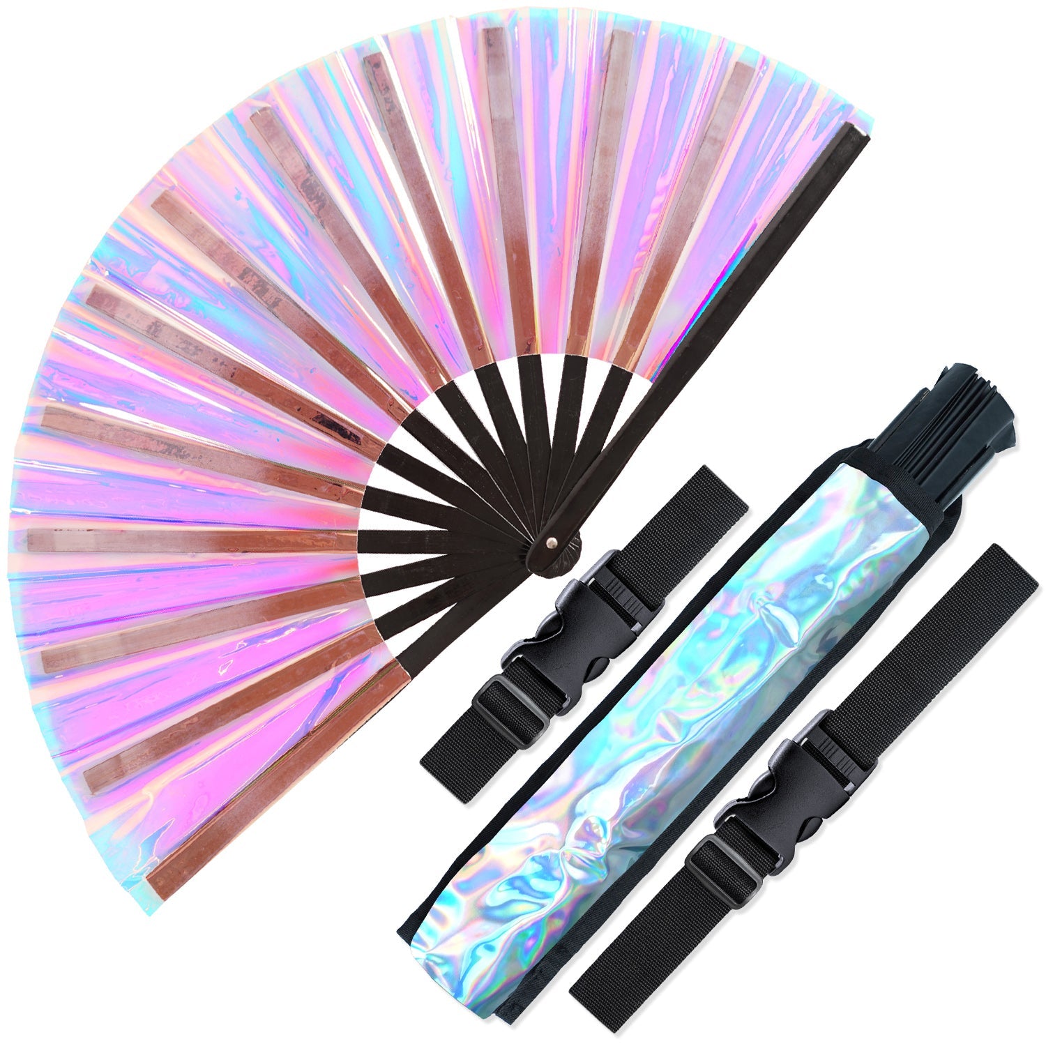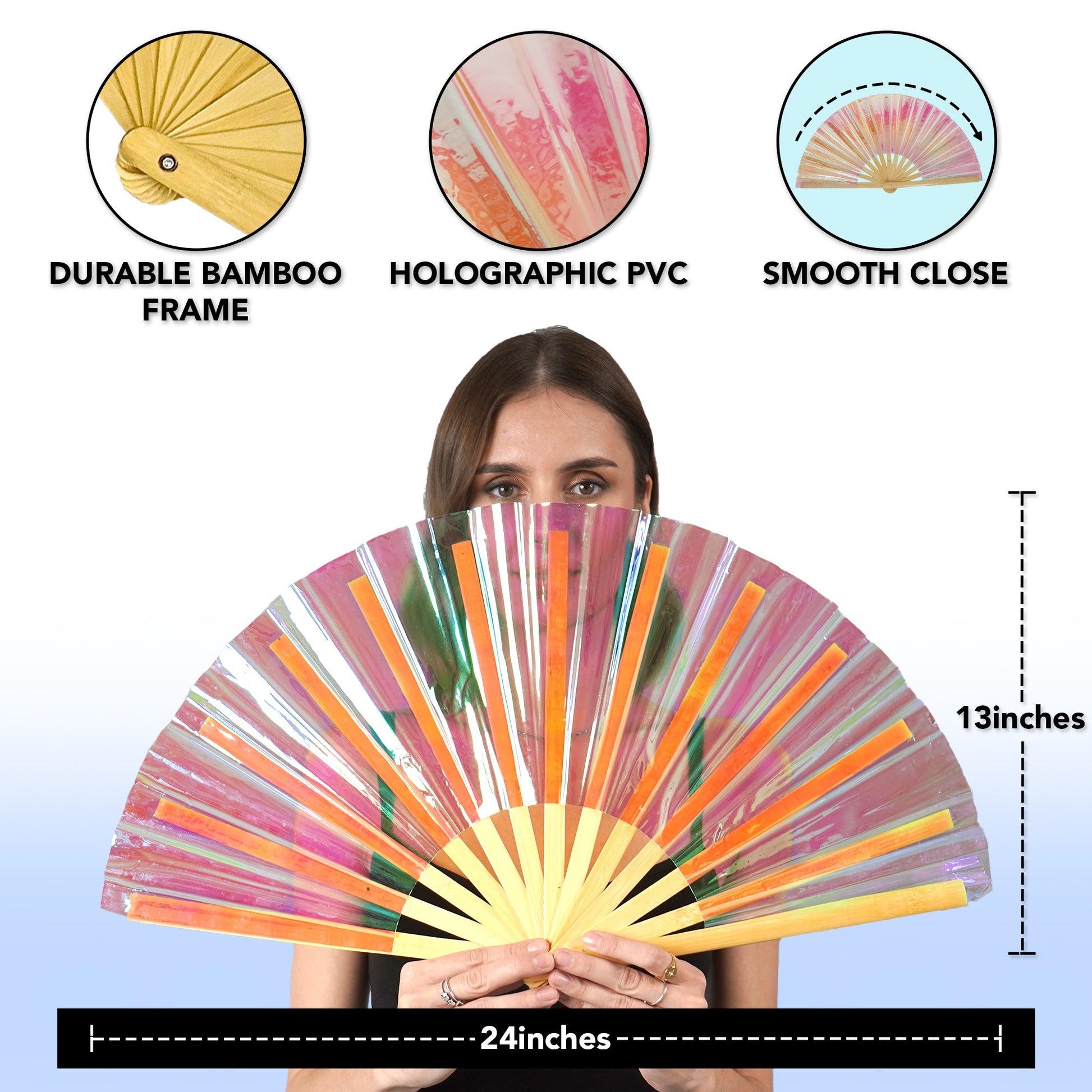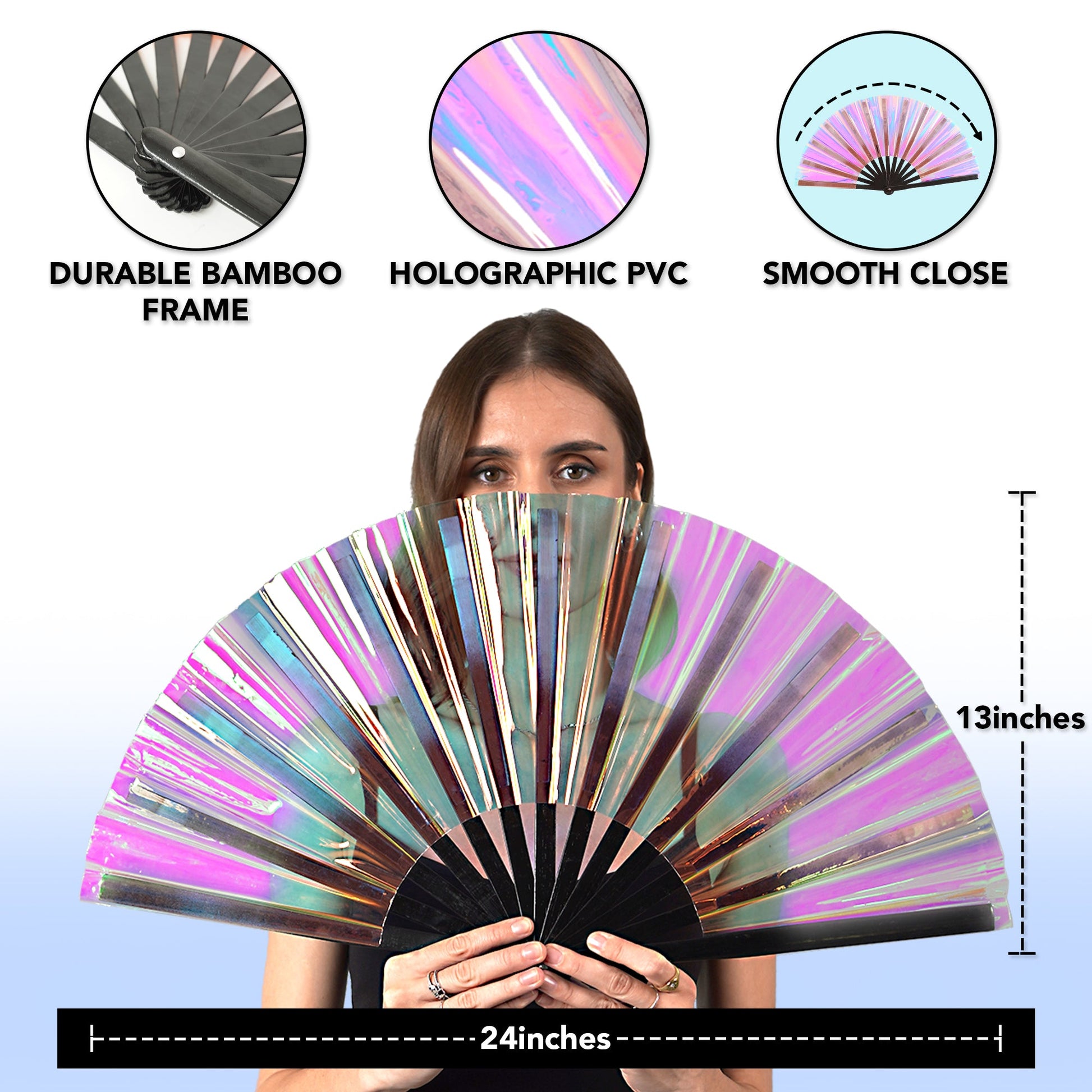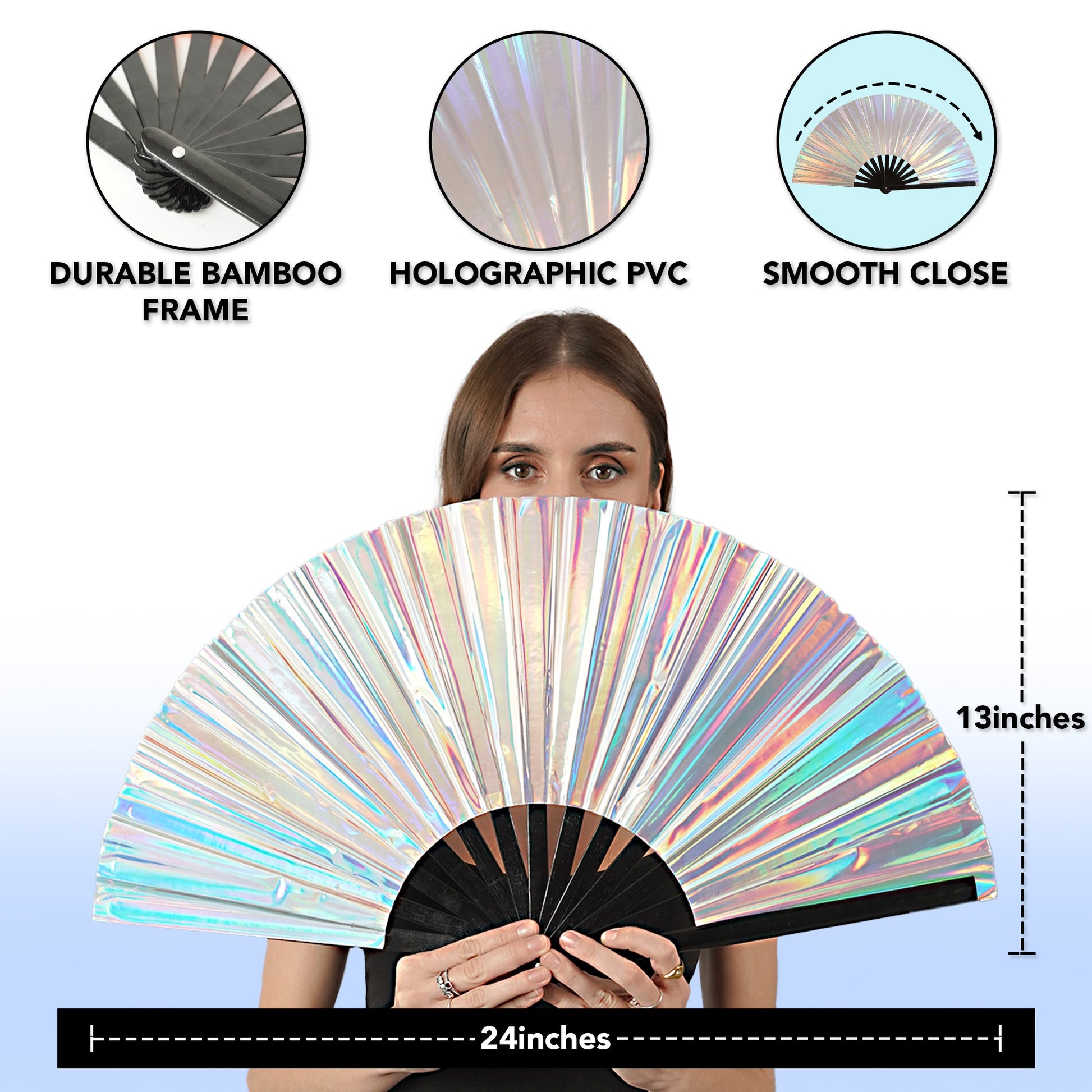Large Folding Fans for Festivals, Drag Queen & Burlesque – Cute Holographic Rave Accessories for Women