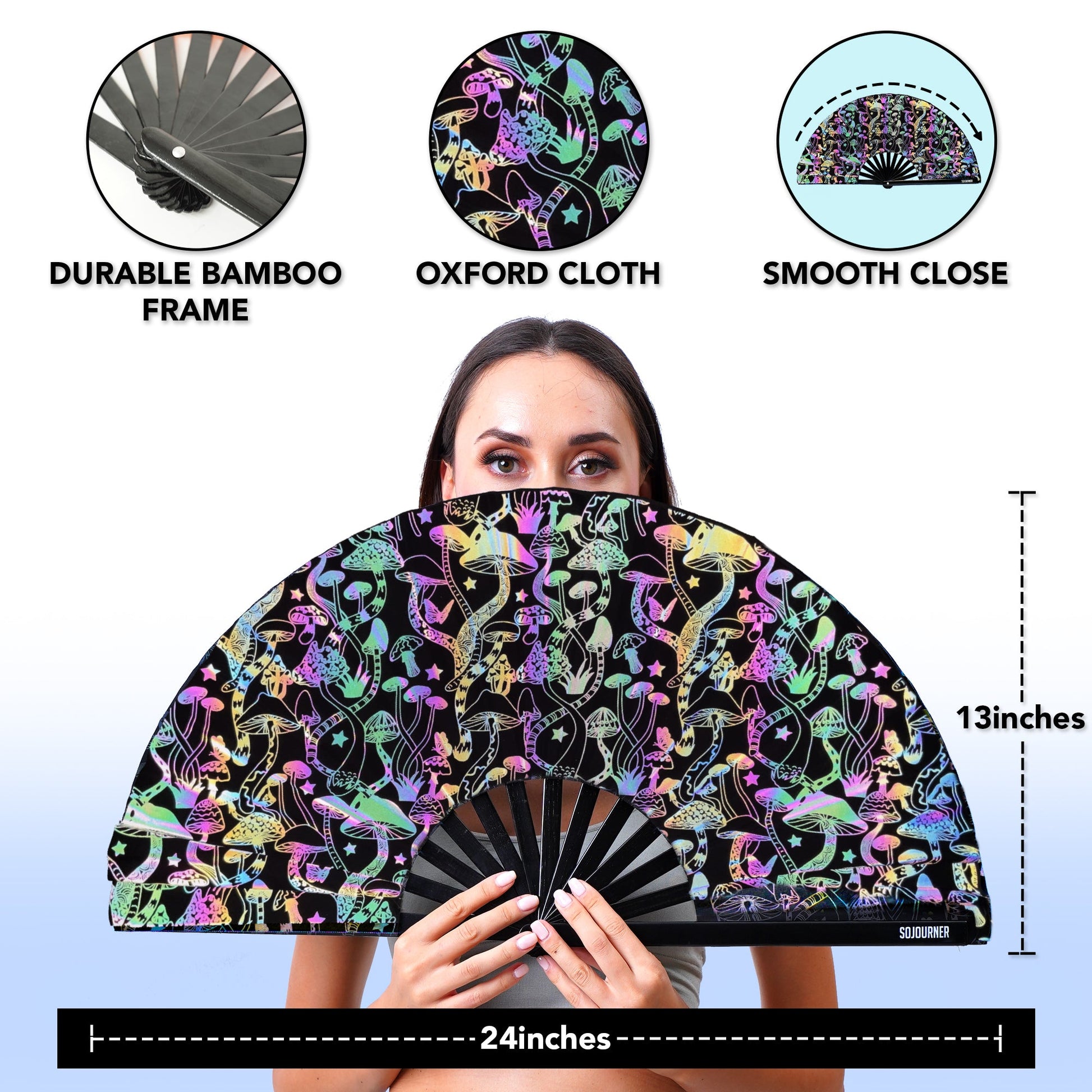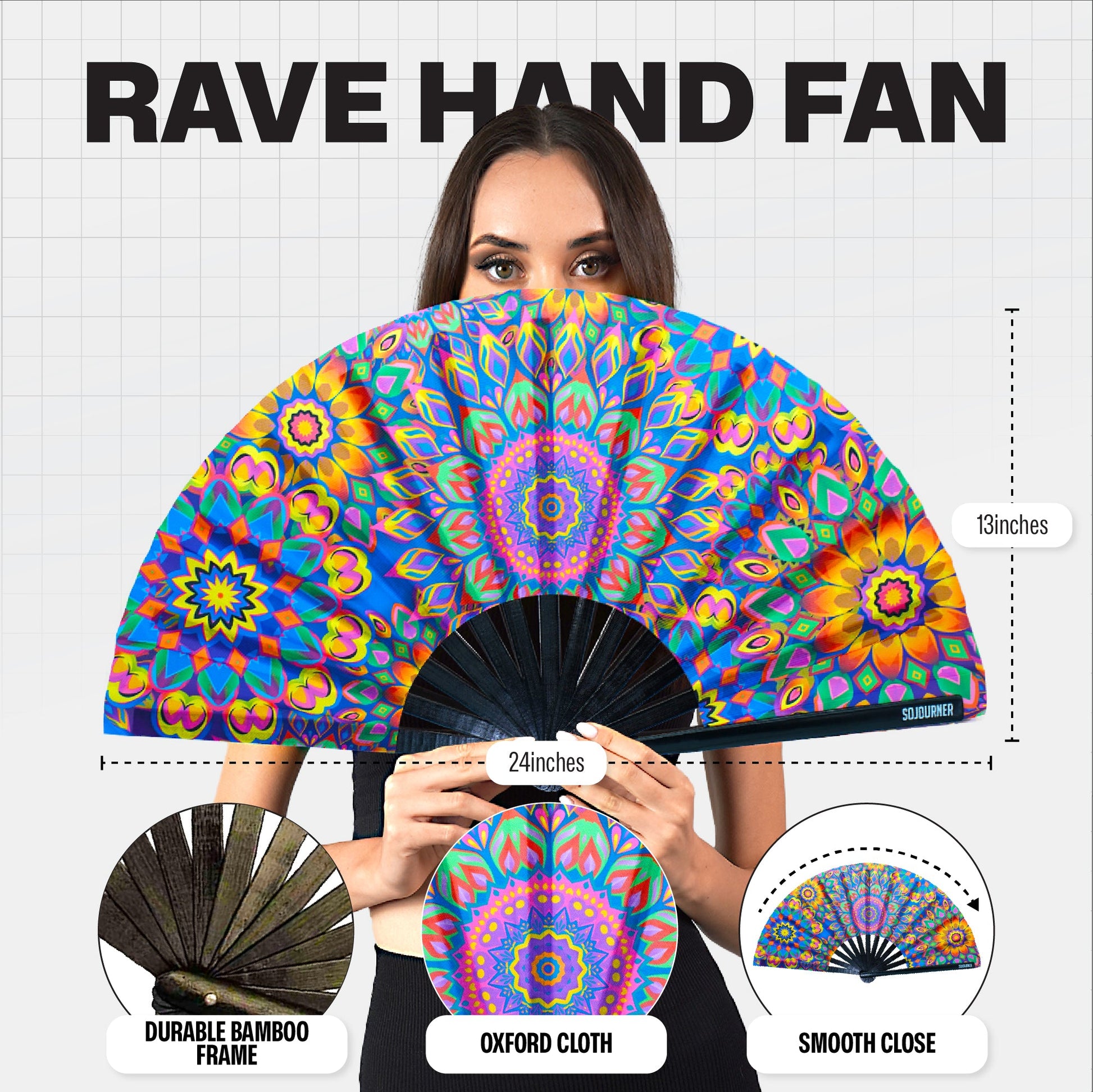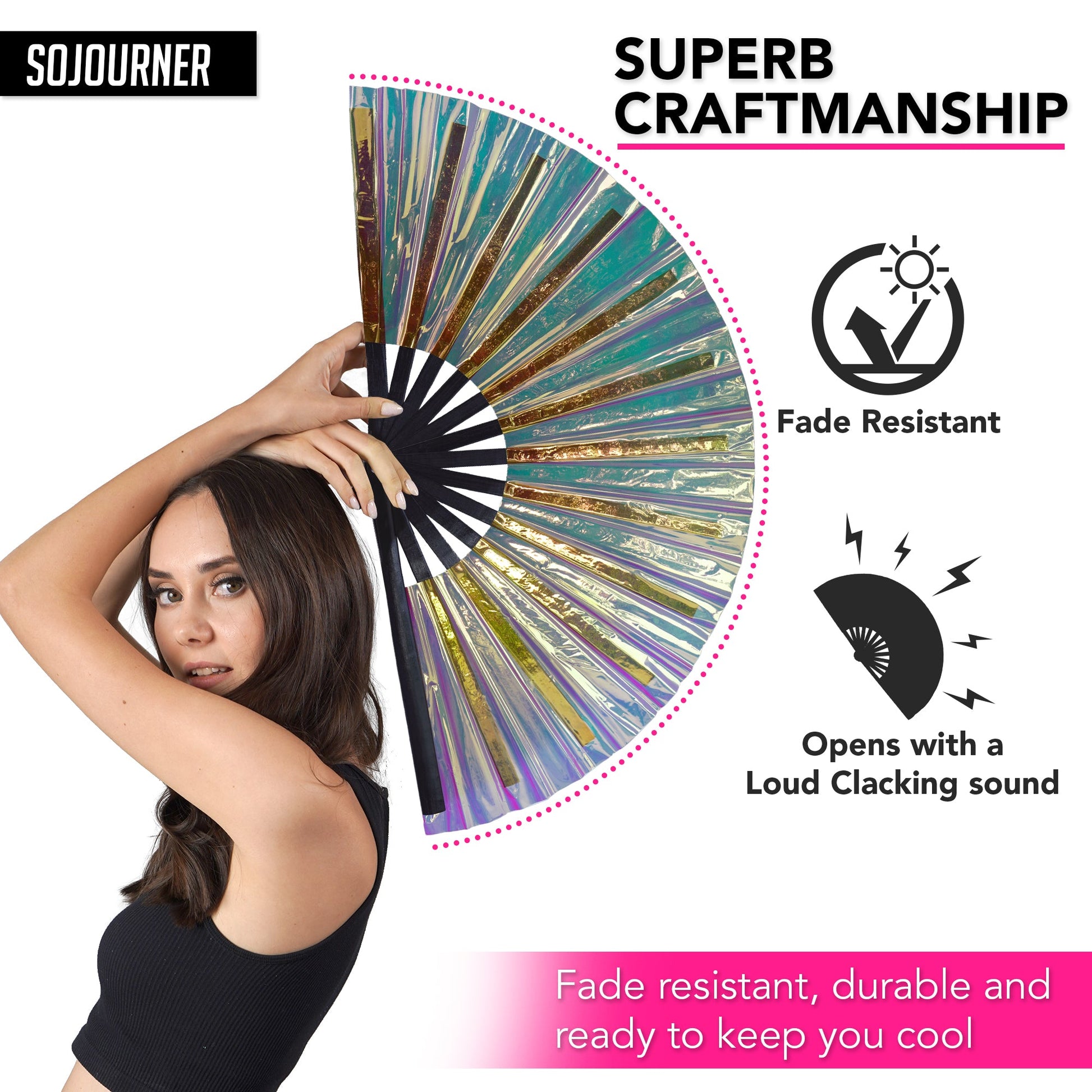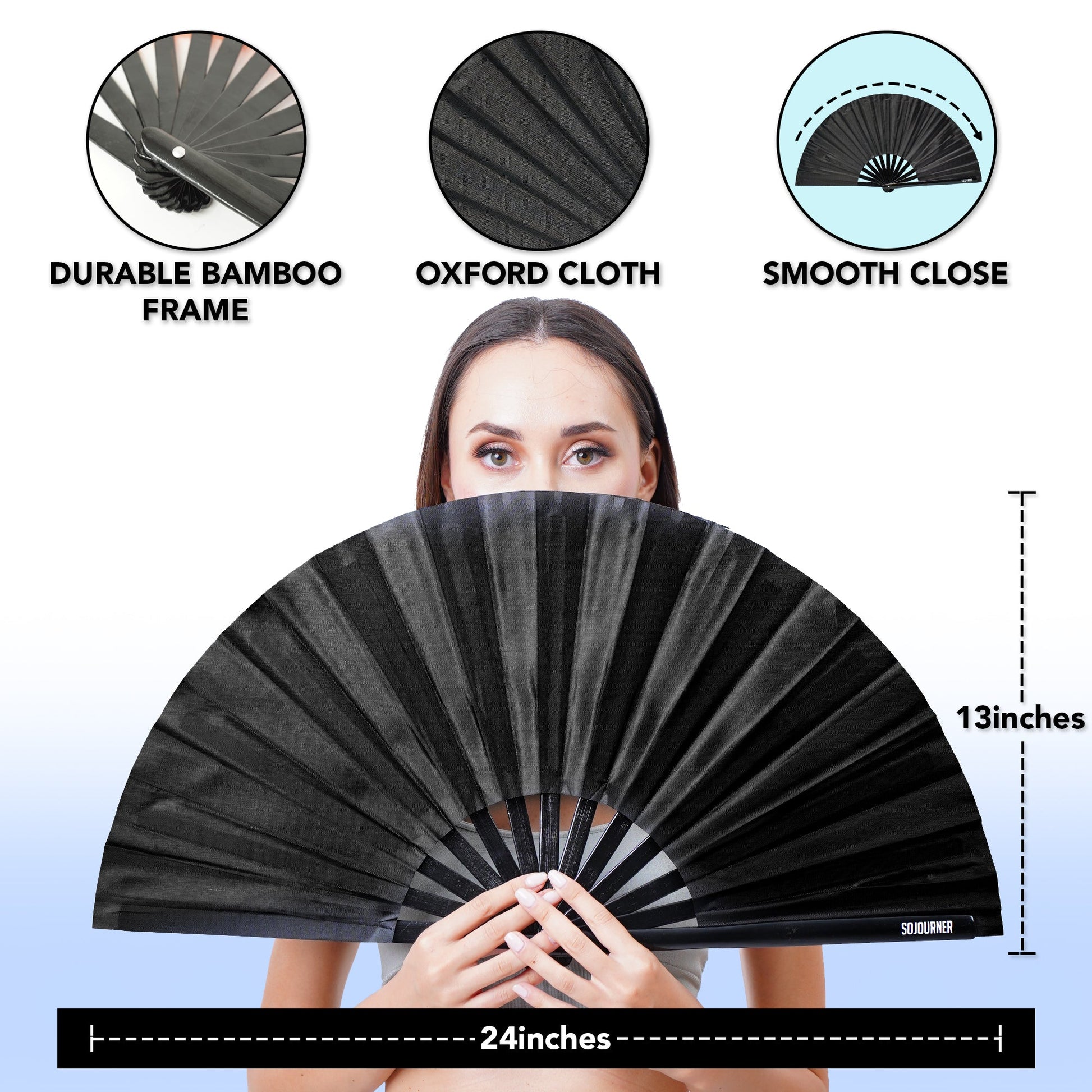 - THE PERFECT BAMBOO HAND FAN FOR EVERY OCCASION: The SoJourner handheld fan is great for keeping your cool while dancing at raves, parties, and weddings. This iconic Japanese fashion accessory is beloved by women and men on the drag queen circuit.