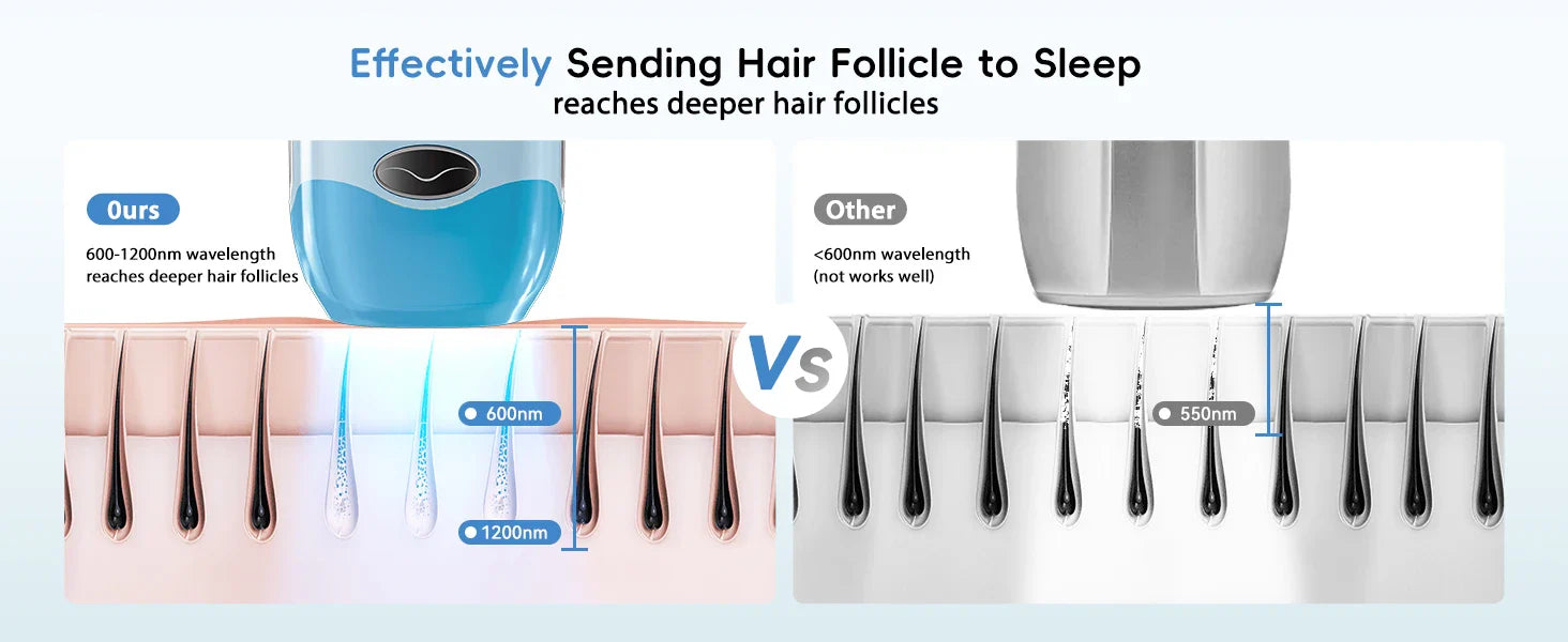 【Safe lPL Technology & Laser-like Results】 At-home laser hair removal is designed with advanced IPL technology toensure safety and effectiveness for most skin and hair types,for both women and men. Achieve hair reduction in thecomfort of your own home, say goodbye to the hassle offrequent razors and hair removal waxes, Safely removeunwanted hair from traditional laser treatments without therazor burn, ingrown hairs, and pain.