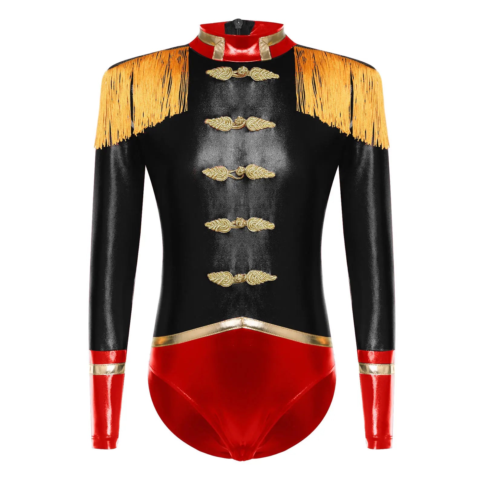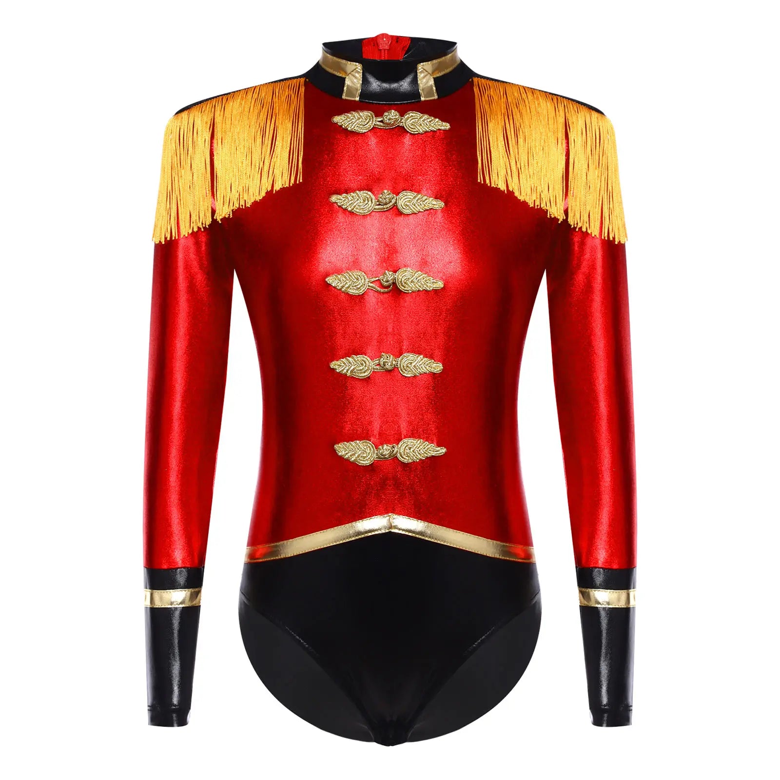Your little star storms the stage in this Nutcracker Ringmaster Cosplay Costume—a metallic leotard built like a uniform of pure power. Shiny fabric hits the lights like a guitar solo, tassel epaulets bring that royal-military swagger, and the bold contrast colors with decorative buttons scream center stage.