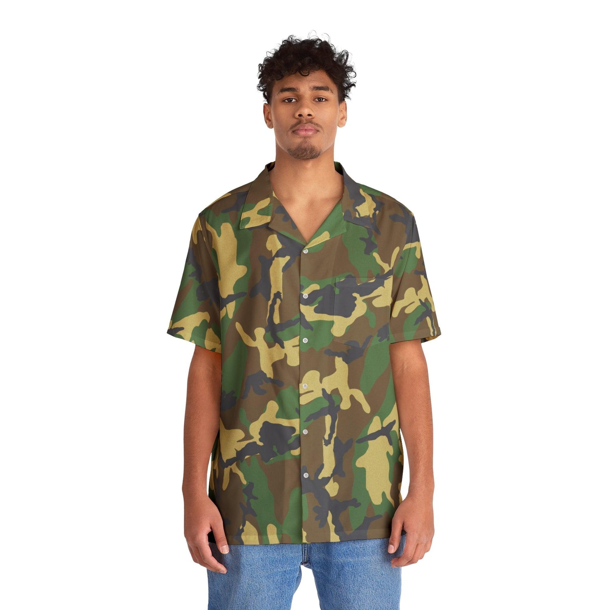 Green Camouflage Men’s Hawaiian Riot Shirt – Heavy Metal Summer Camo Vibes