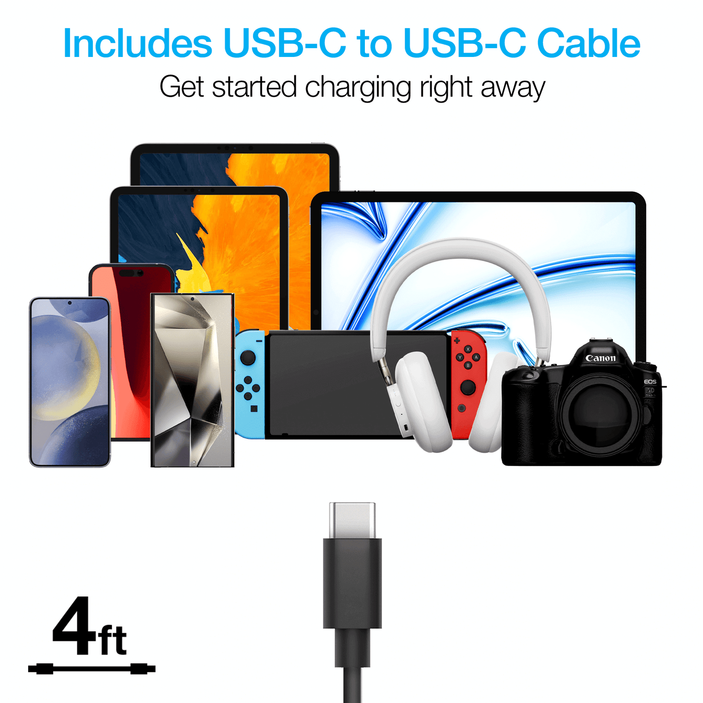 With the included 4ft USB-C to USB-C cable, this complete charging kit has everything you need to charge at maximum speed on the go. (Vehicle not included.)