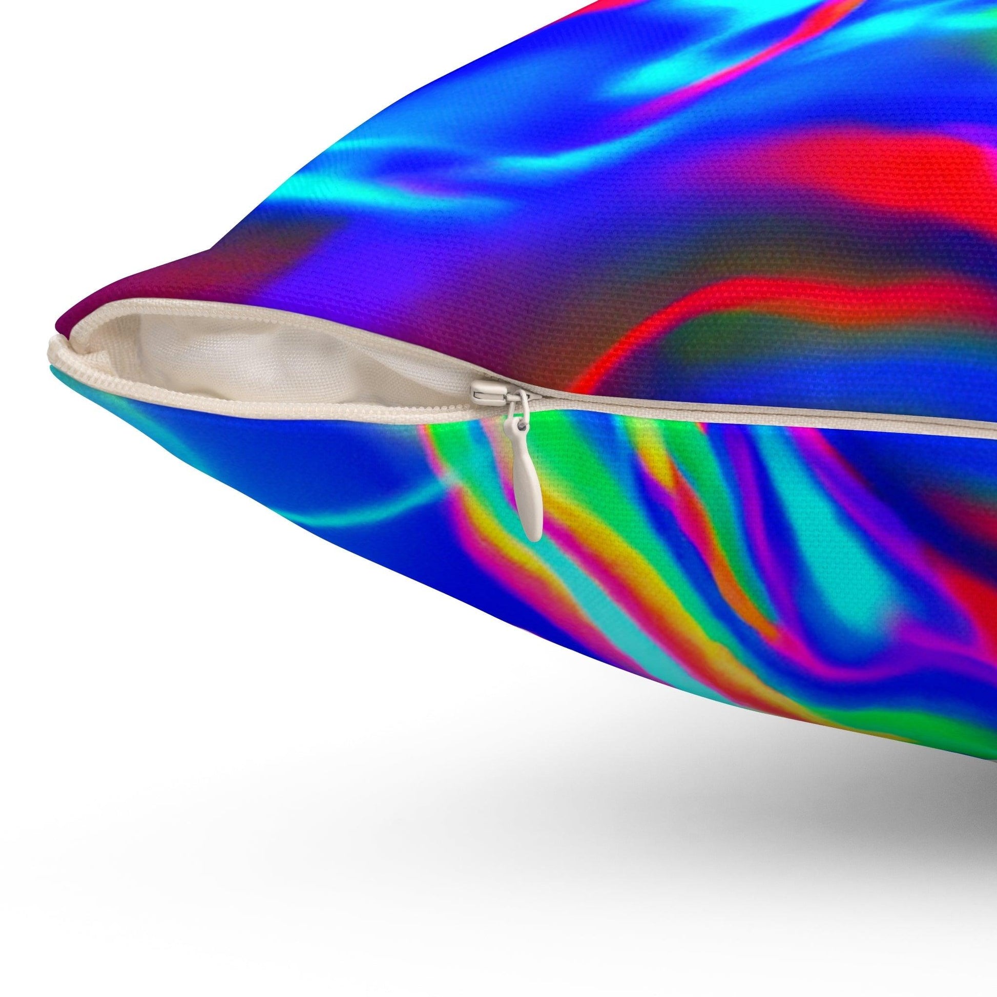 The Neon Love Spun Pillow hits harder than a midnight encore, glowing up your space like a back-alley club sign. Double-sided print means no “bad side,” and the concealed zipper hides like a switchblade—clean, sleek, ready for the chaos of parties, late-night crashes, or just sitting pretty like it owns the room.