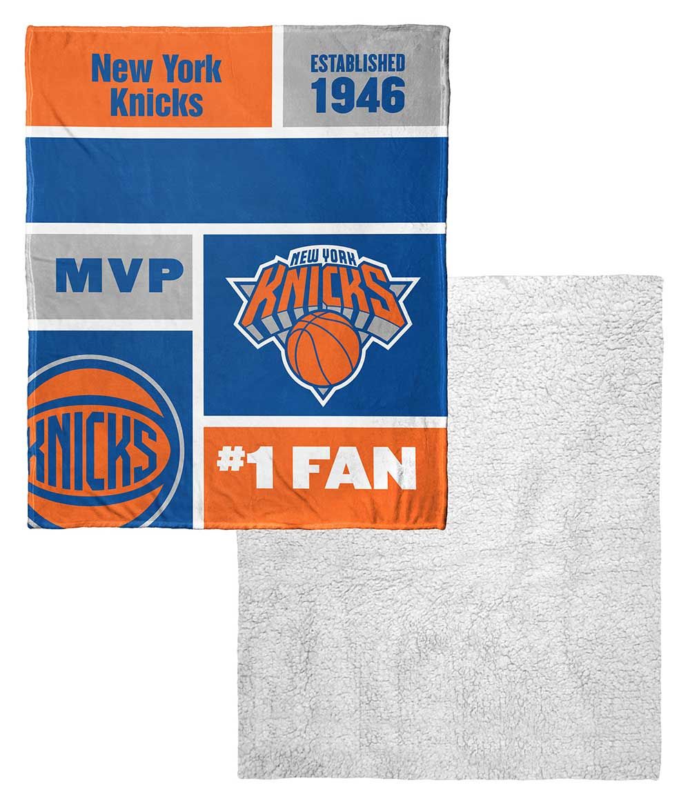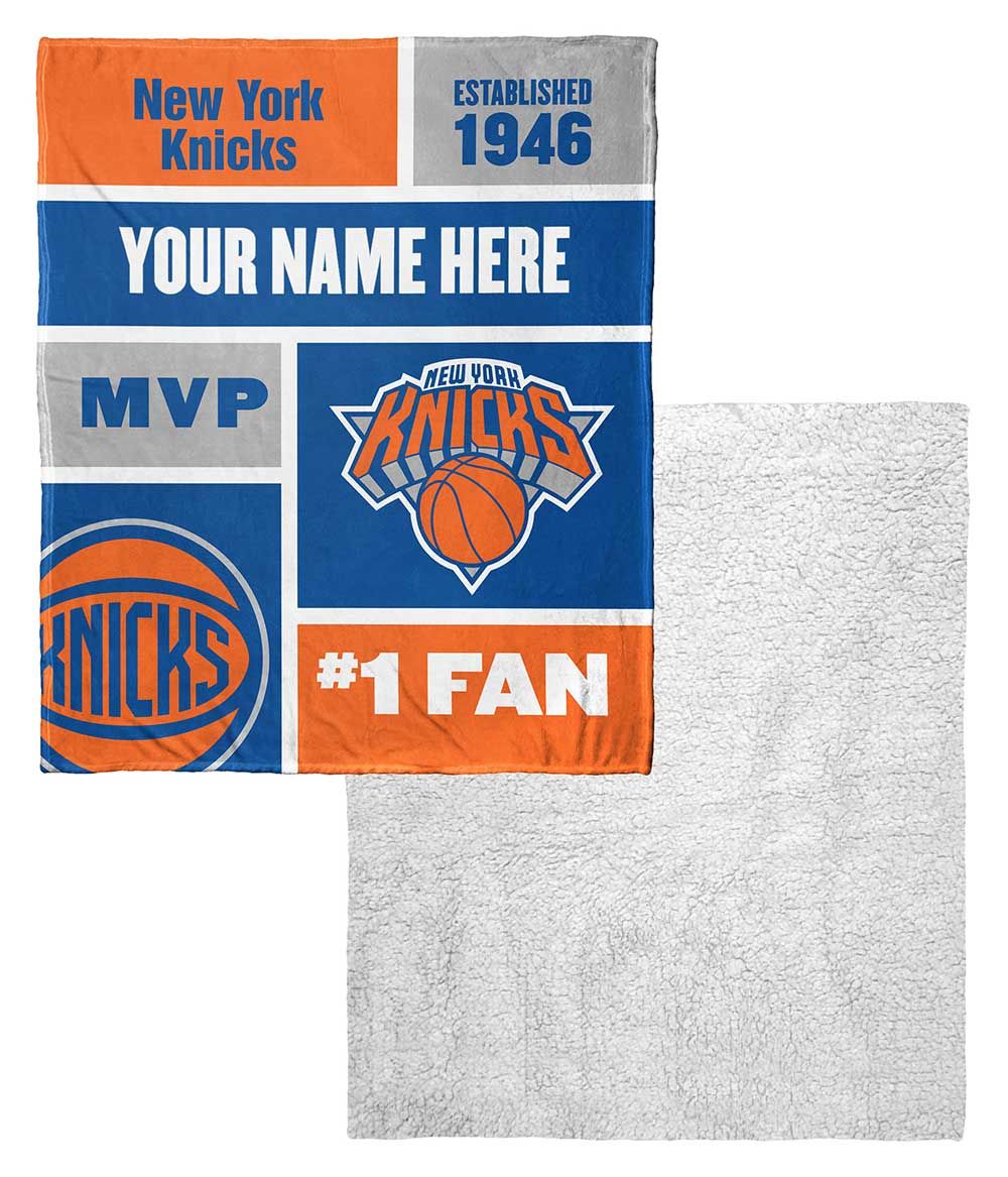 [Personalization Only] OFFICIAL NBA Colorblock Silk Touch Sherpa Throw Blanket - New York Knicks