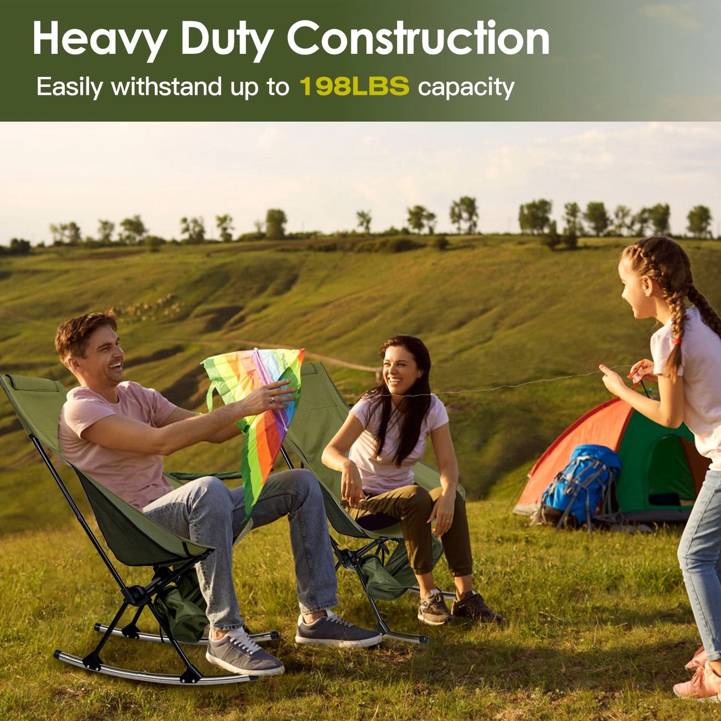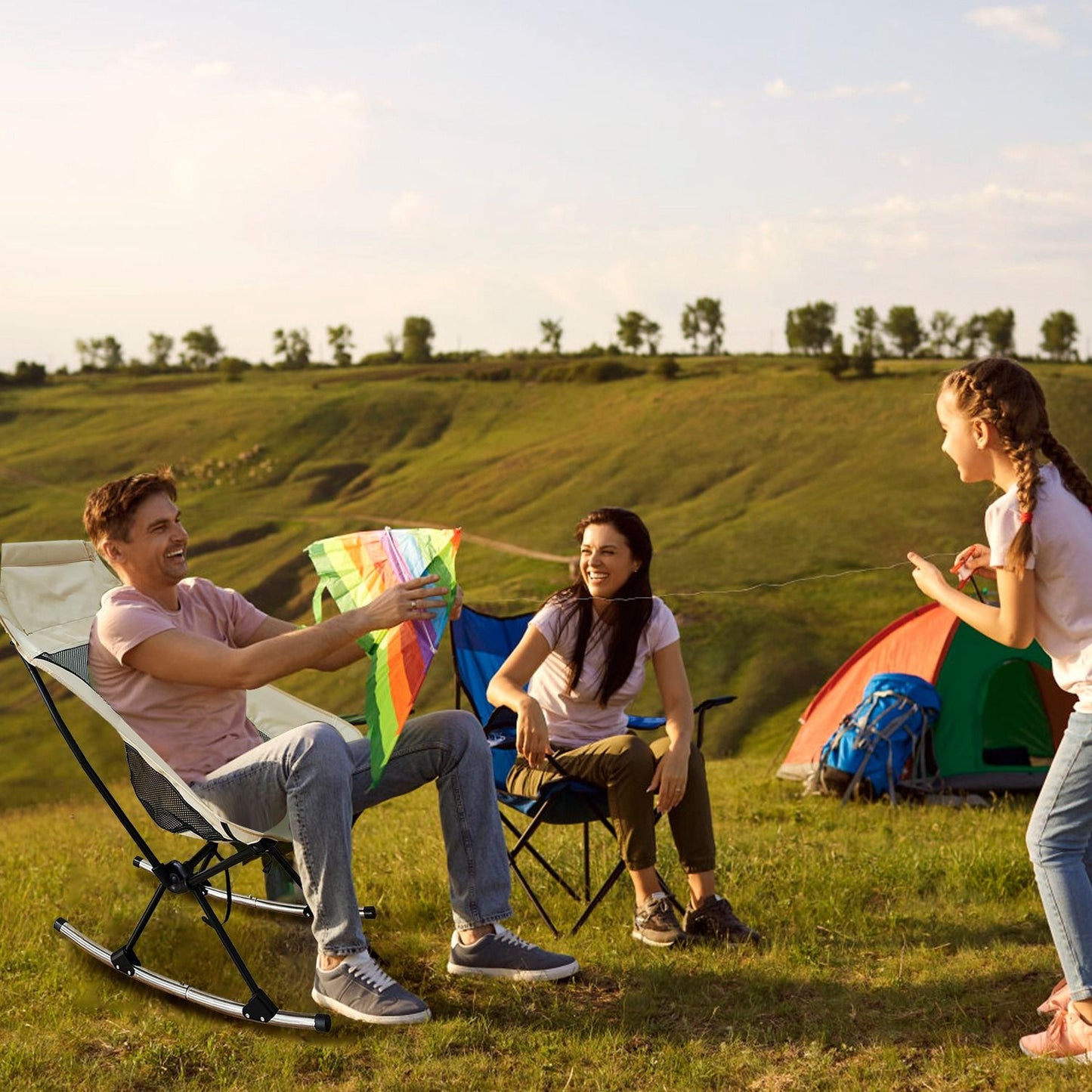 Portable Camping Rocking Chair 198LBS Weight Capacity Included Carry Bag High Back Rocker Chair For Patio Fishing Beach Lawn Travel