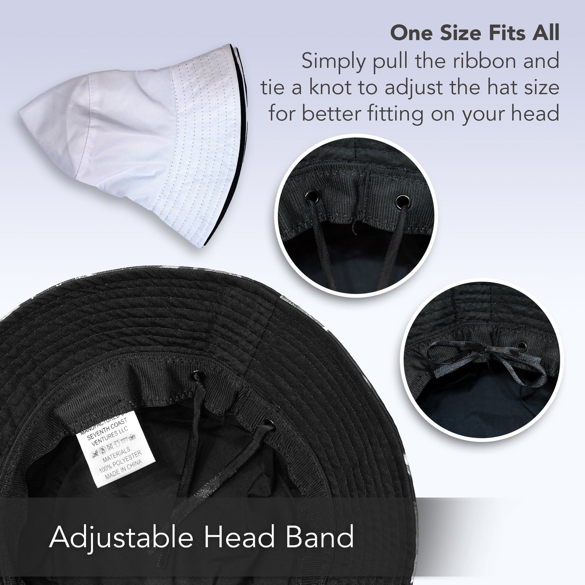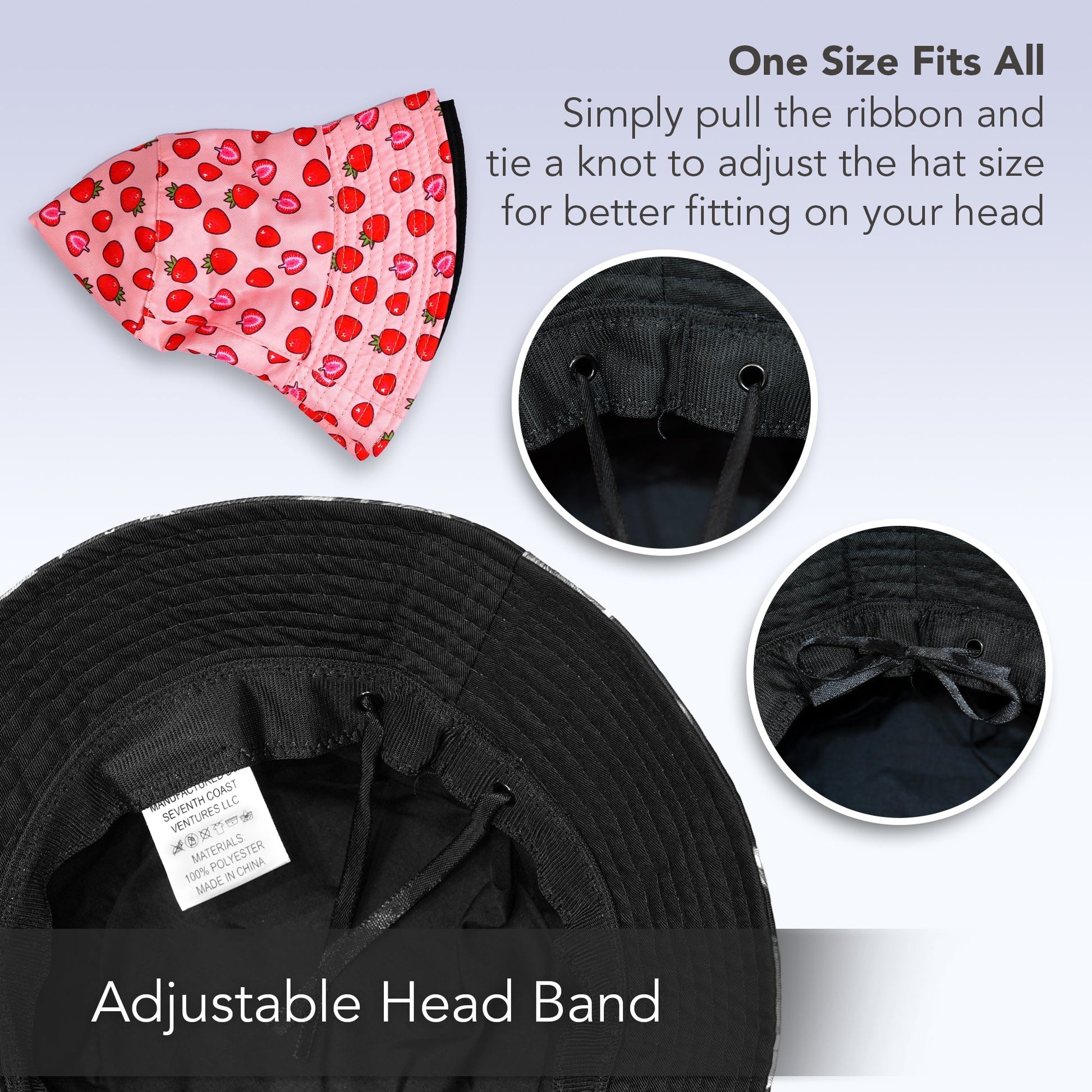 Our bucket hat has adjustable strings to accommodate all head sizes, ensuring everyone can rock these fashionable accessories with confidence.