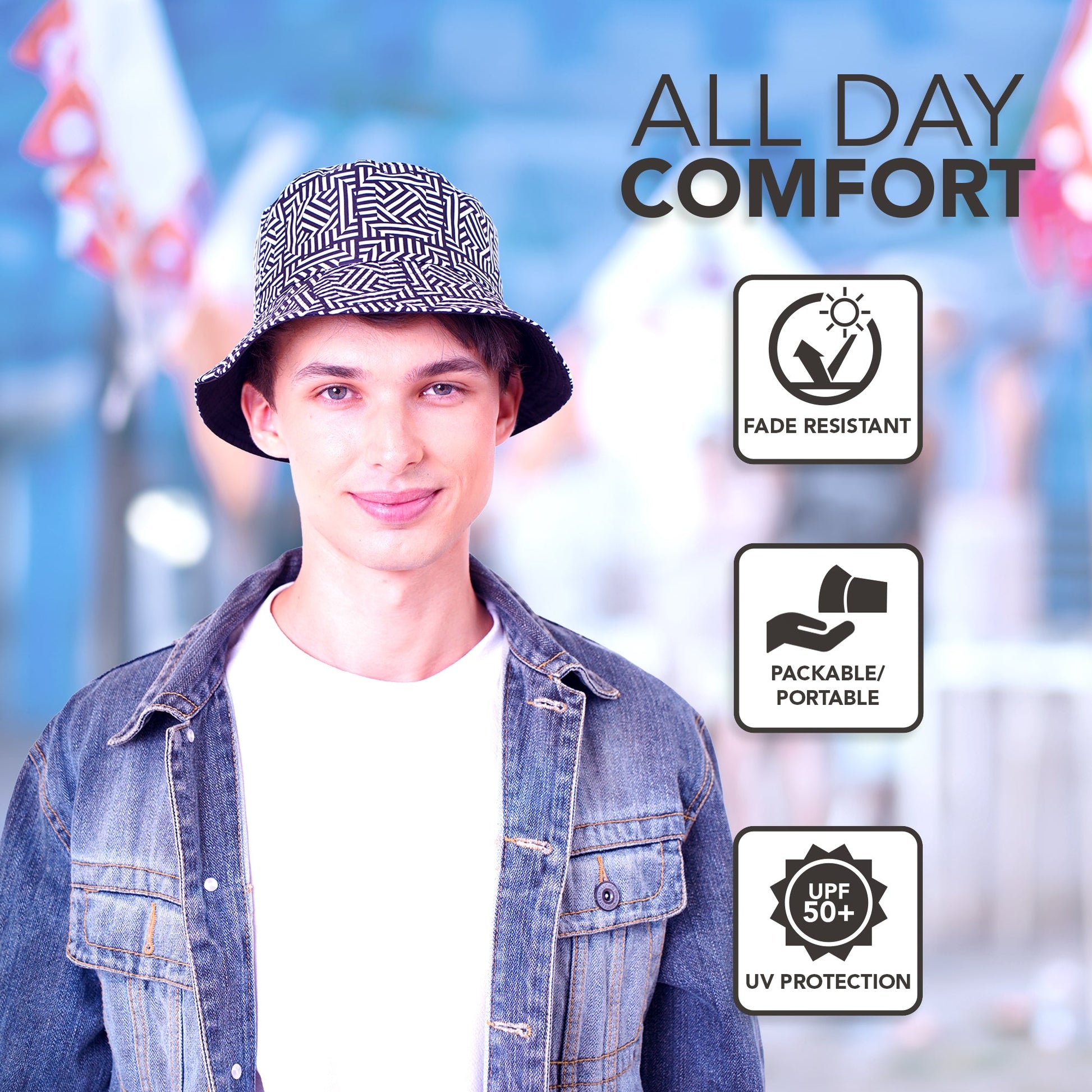 Our Bucket Hats for men offer a secure fit and are made from premium materials for long-lasting durability. The sturdy brim provides excellent sun protection.