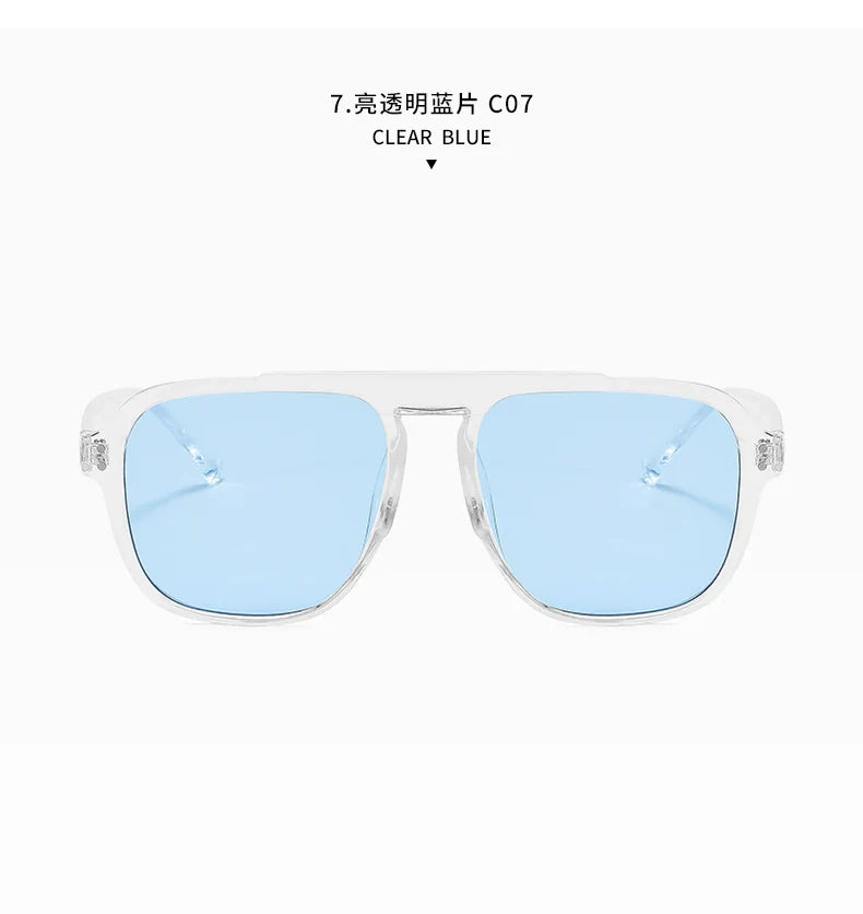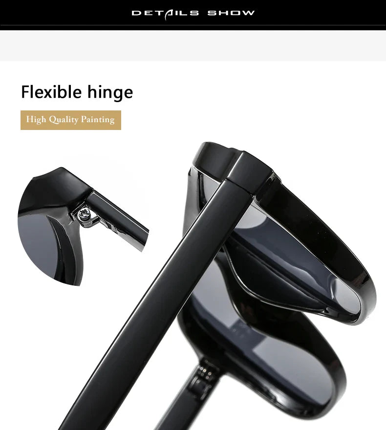 Designed for the stage, the street, and every wild detour in between, these oversized square sunglasses bring heavy-metal swagger with vintage designer DNA. The UV400 acrylic lenses melt glare like stage lights on tour night, while the riveted plastic frame hits that perfect balance between Hollywood flash and rock rebellion.