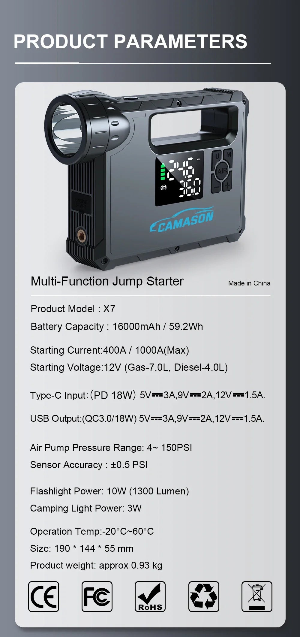 Forget begging strangers for a jump or fumbling with weak torches. This beast throws 1000A peak current, inflates tires to 150PSI, powers your phone fast, and lights up the night up to 2000 meters. It’s like carrying a tour generator in your glove box. And because we always back our riffs, you get Free Shipping Forever + the Lizard Vigilante Money-Back Guarantee. Limited drop—once it’s gone, you’re back to roadside purgatory.