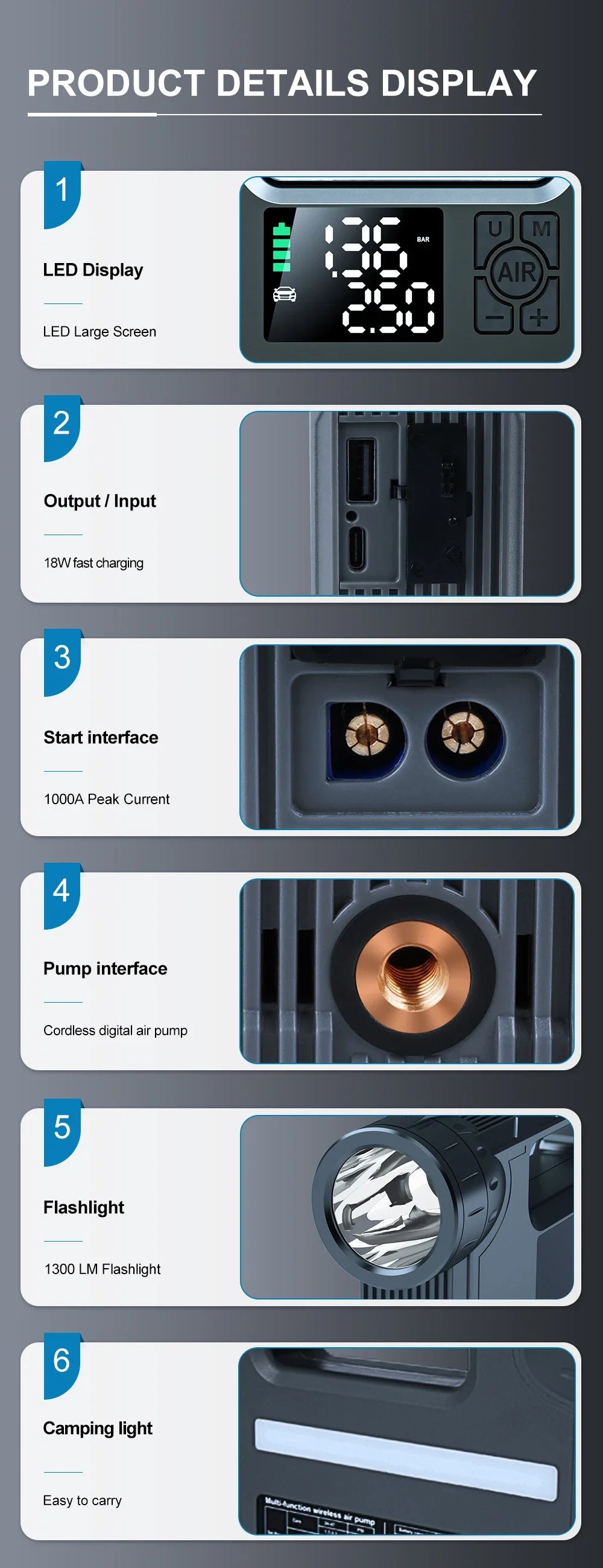 Built-in air pump, can inflate car tires, motorcycle tires, bicycle tires, basketball, tents and other equipment.