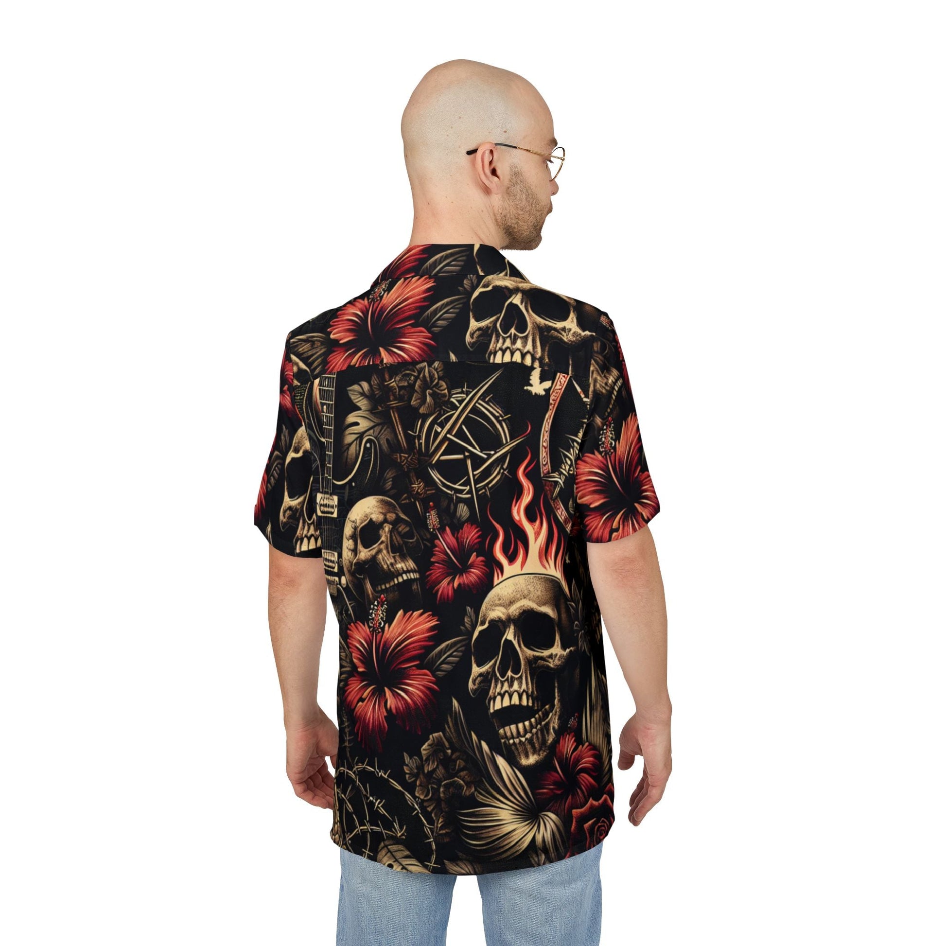 Skull & Floral Hawaiian Shirt - Summer Vibes, Unisex Button-Up for Beach, Concert, Vacation, Festival, Casual Wear