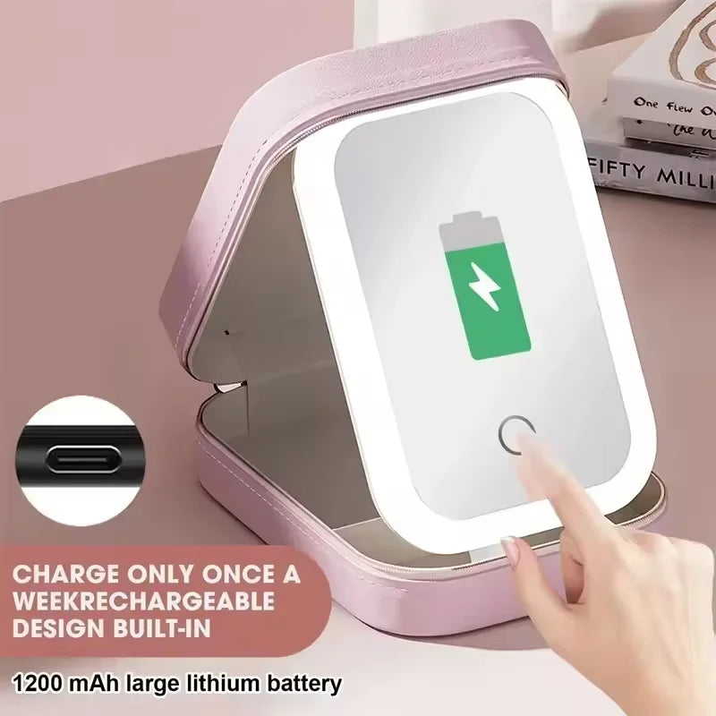 THOOBO! GlowVault Rechargeable LED Makeup Mirror Travel Case – 3-Color Light, Smart Cosmetic Storage Box, Ultra-Portable Beauty Companion