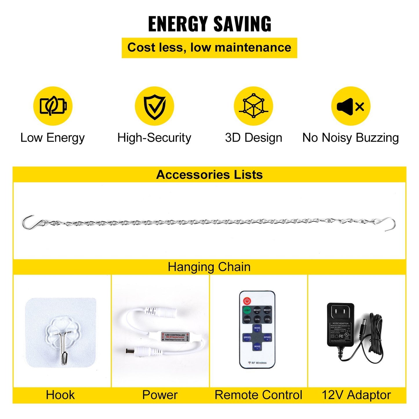 Easy to Install and Use: Our let's party sign has 2 pre-drilled holes and hanging chains. Connect the signs to the adaptor first, then link the chains with holes. You can move them into the ideal position, hang them or fix them on the wall, or place them on a flat surface. (screws and 12V adapter are included).