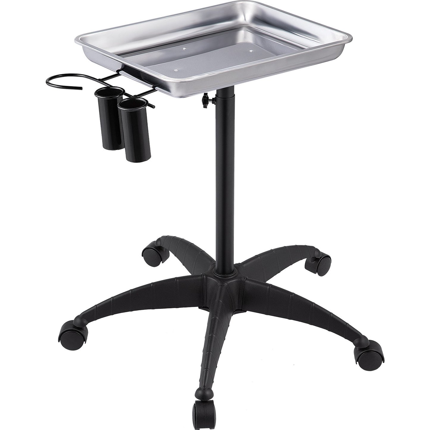 VEVOR Mayo Stand Medical Tray, Height Adjustable Stainless Steel Salon Tray Easy Assemble Tattoo Cart Lab Tray with 2 Cups & 1 Metal Ring for SPA Clinic Personal Care Lab Hospital Dentistry, Silver