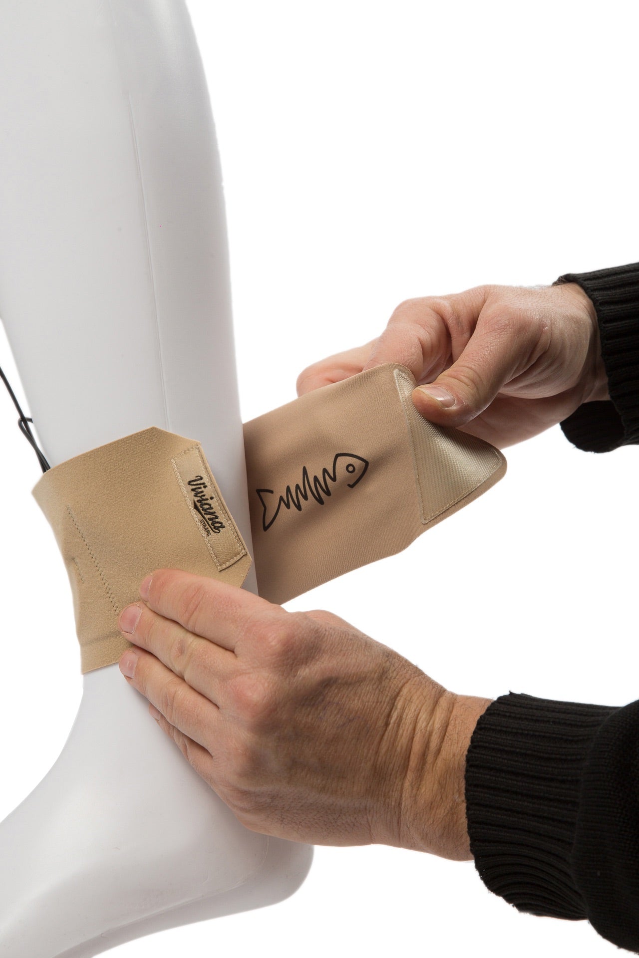 The Viviana Transmitter Ankle Strap is a wireless transmitter belt designed for safely securing and concealing wireless transmitters on talent for film, television and many other live productions.