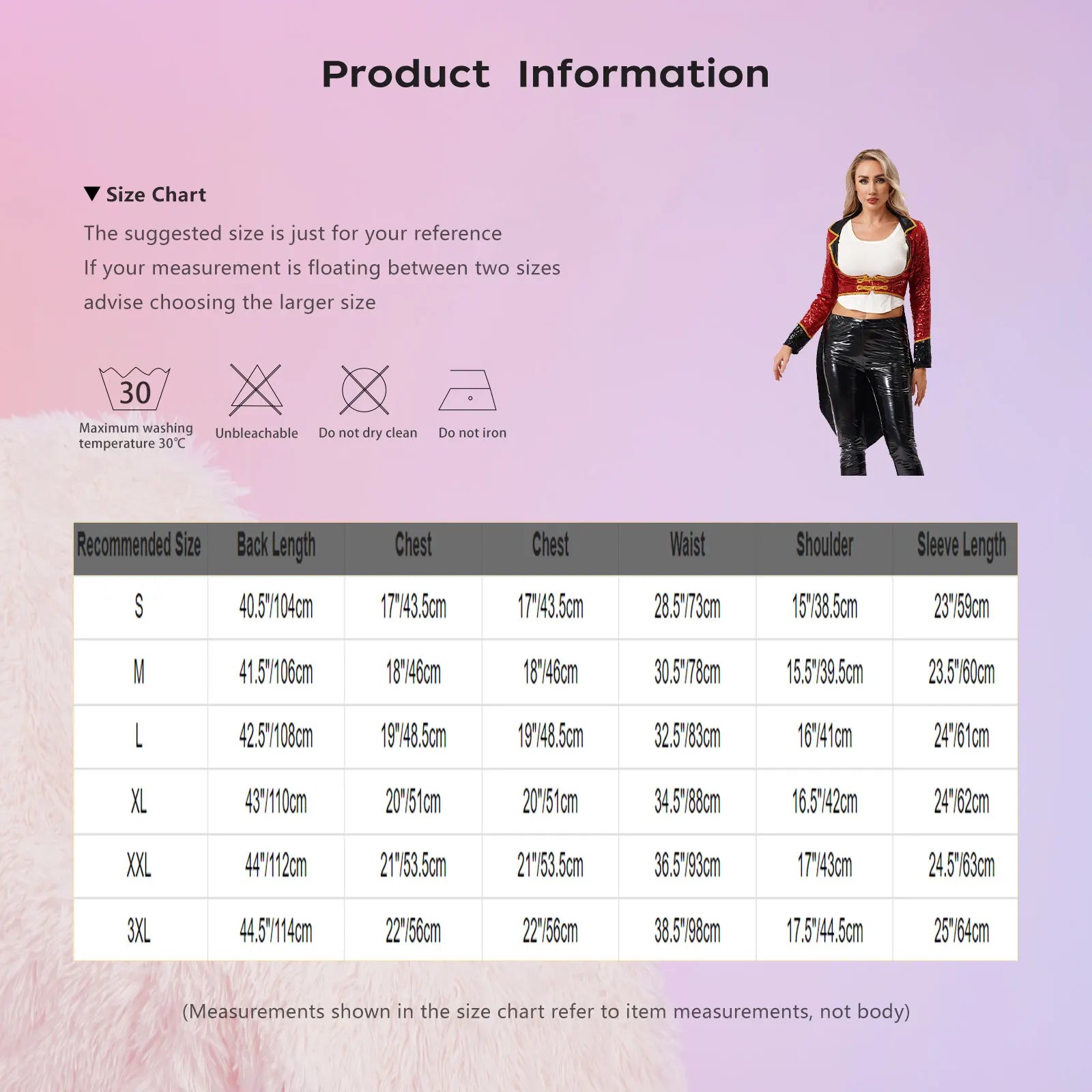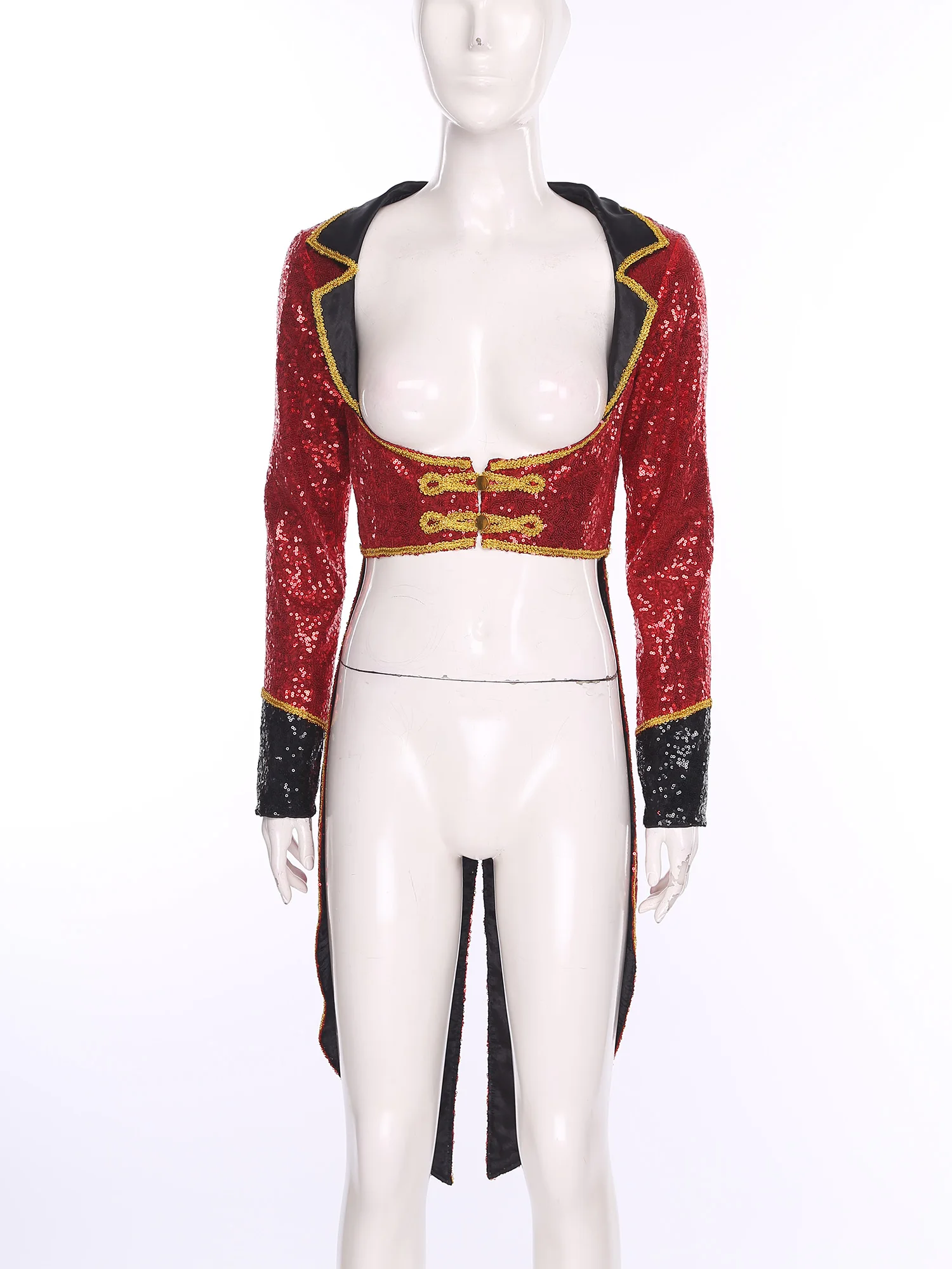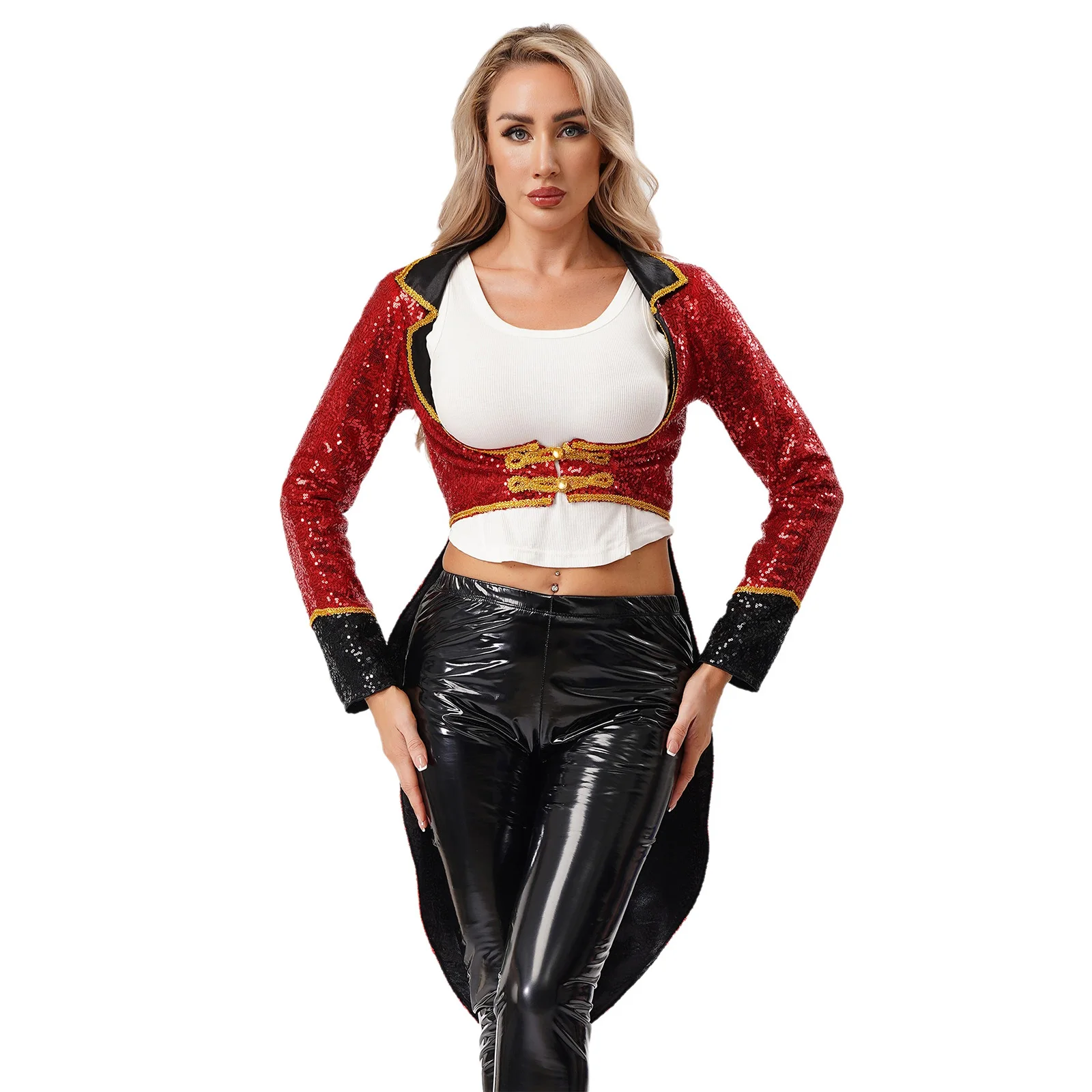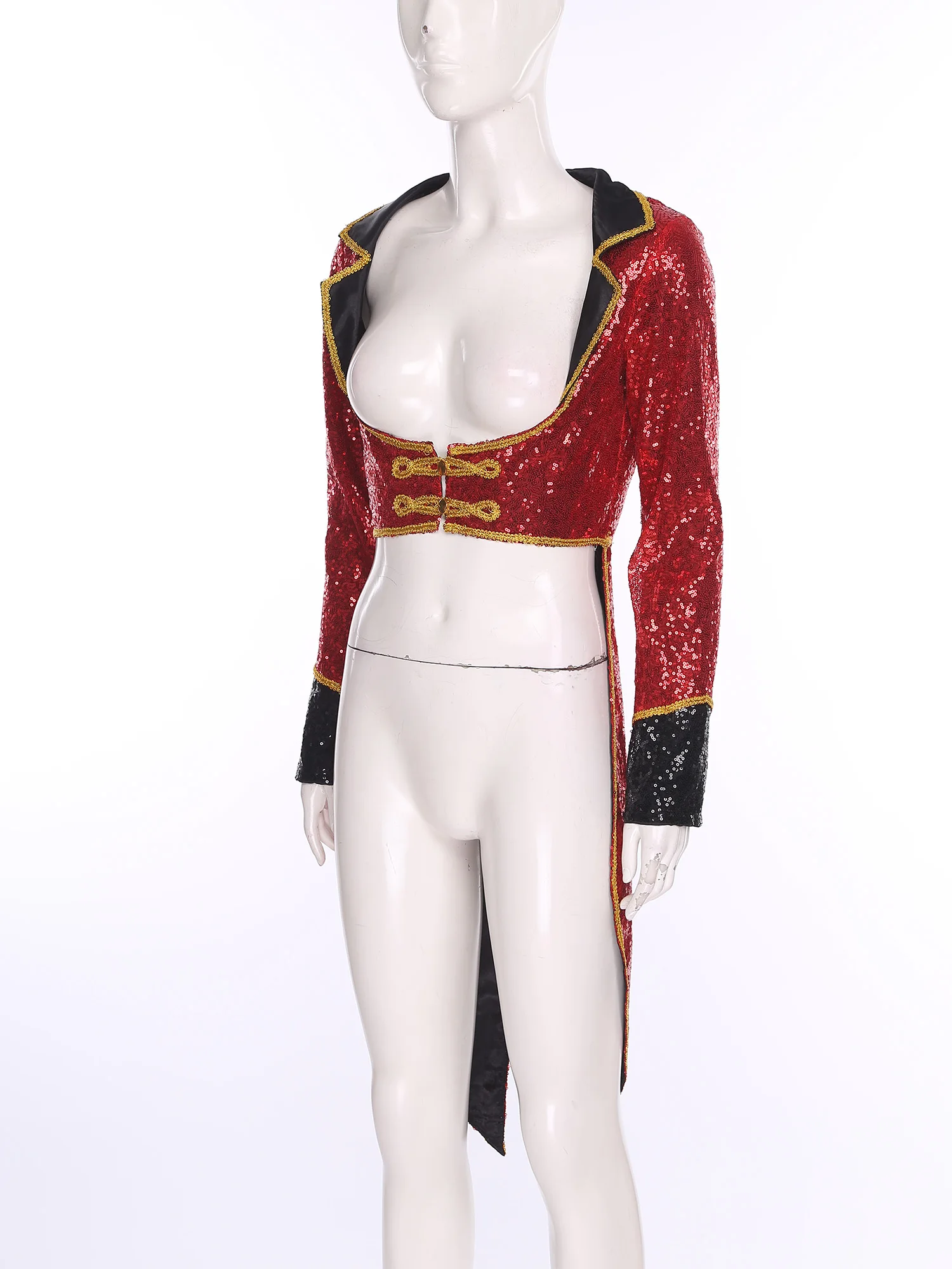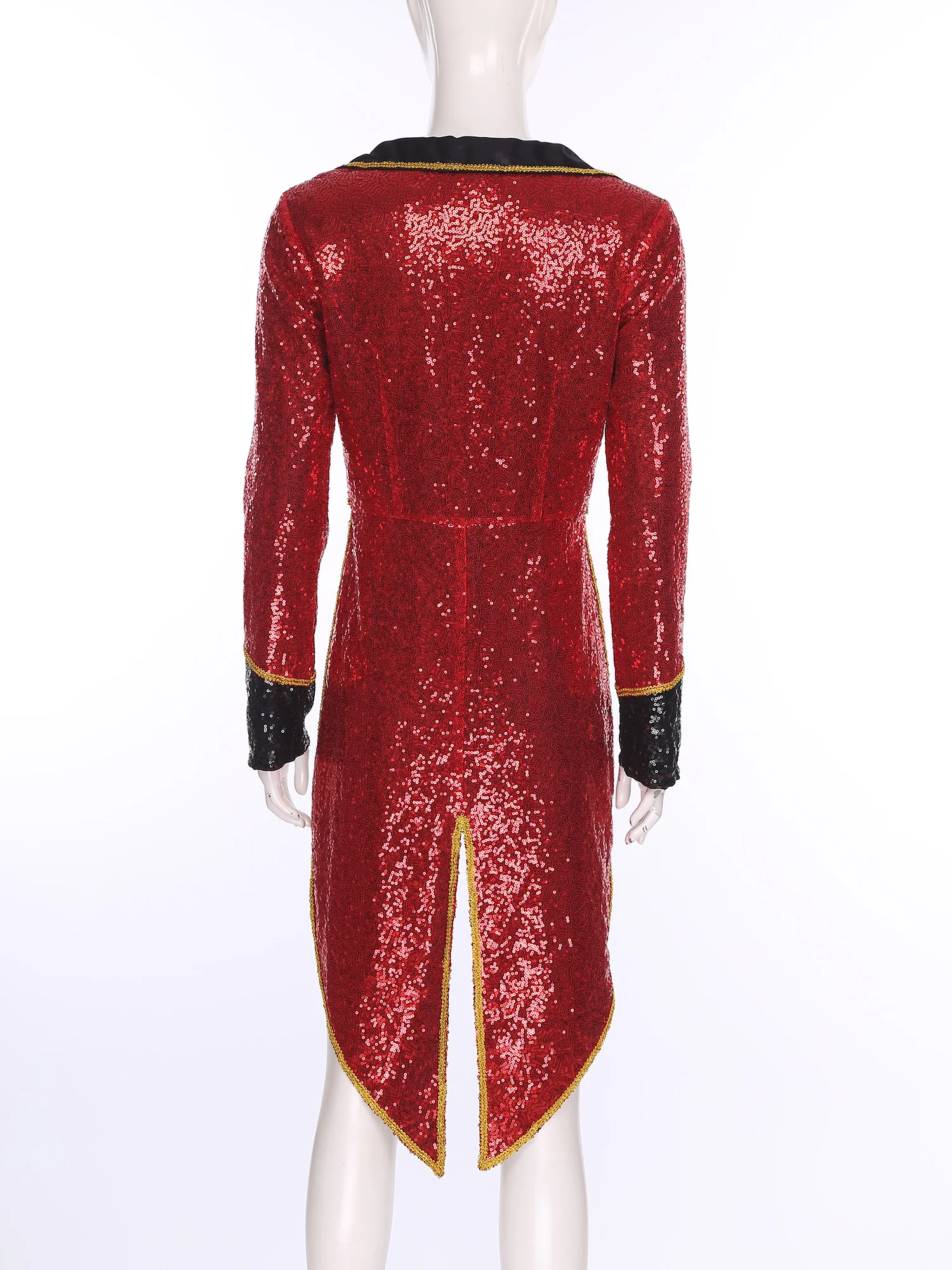 Women’s Circus Ringmaster Sequin Tailcoat Jacket – Magician Cosplay Costume for Halloween and Carnival