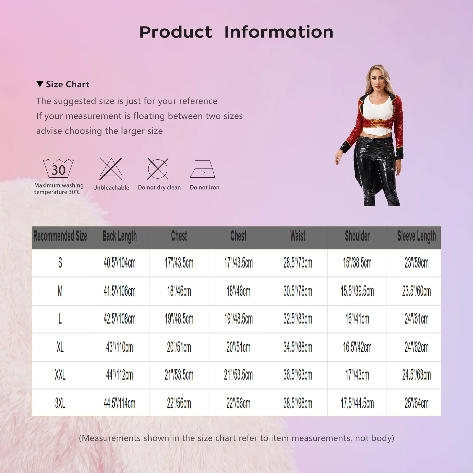 Product Name: Women’s Circus Ringmaster Magician Cosplay Sequin Tailcoat Jacket
